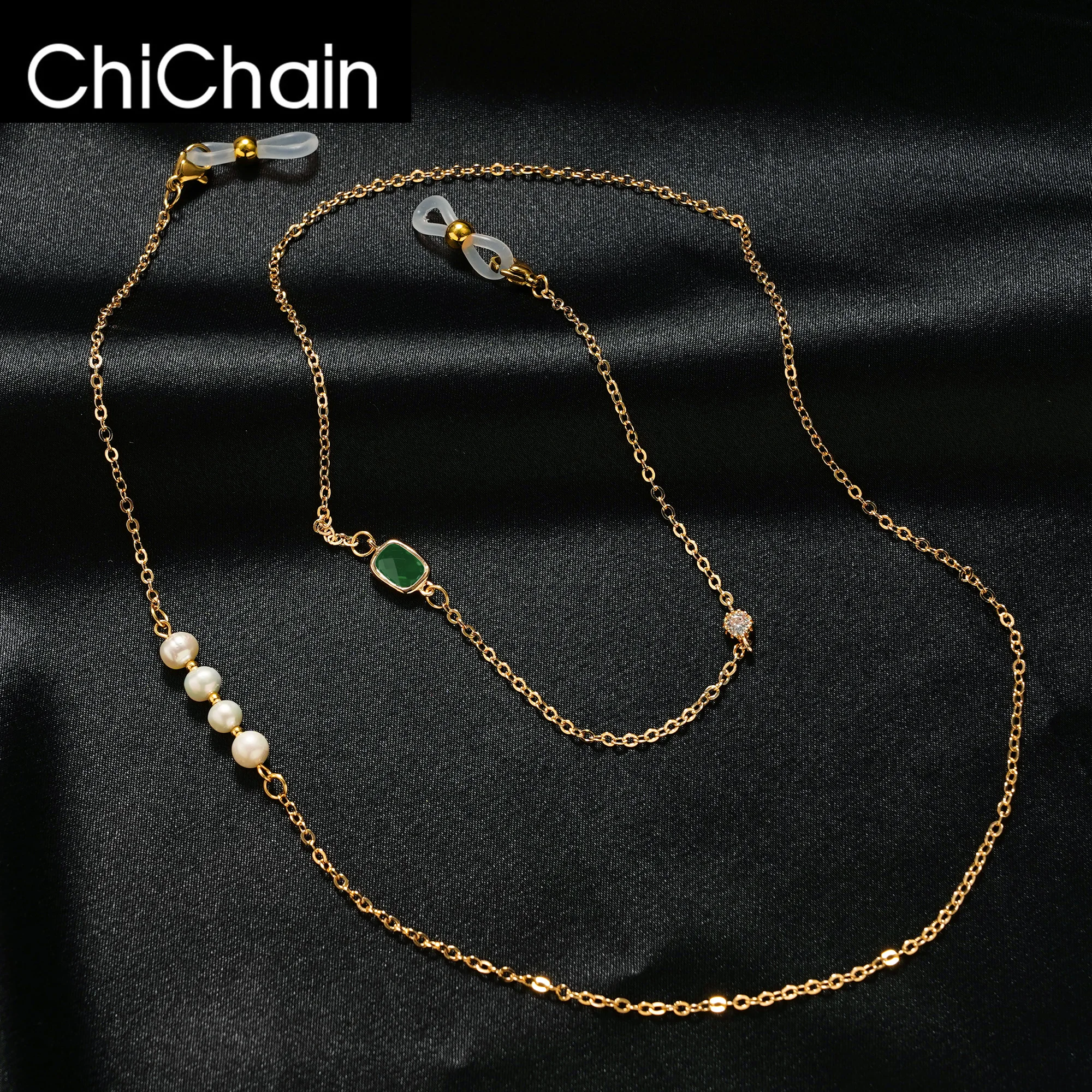 Simple Pearl Gem Sunglasses Sunshade Chain Fashion Metal Mask Chain Glasses Chain Charm Metal Lanyar...