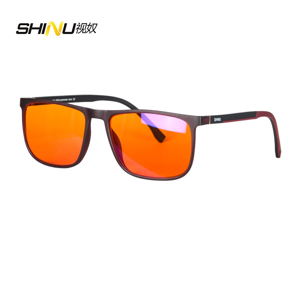 SHINU anti blue light lense computer glasses for men TR90 orange blue light blocking glasses 2024 bl...