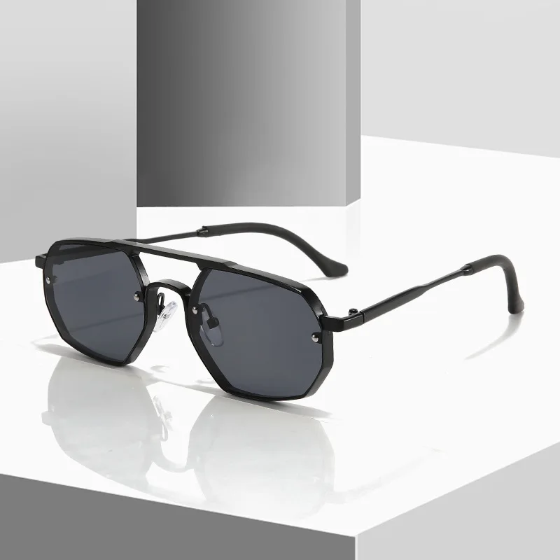 Fashion Geometric Double Bridge Eyewear Solar Metal Student Sunglas...
