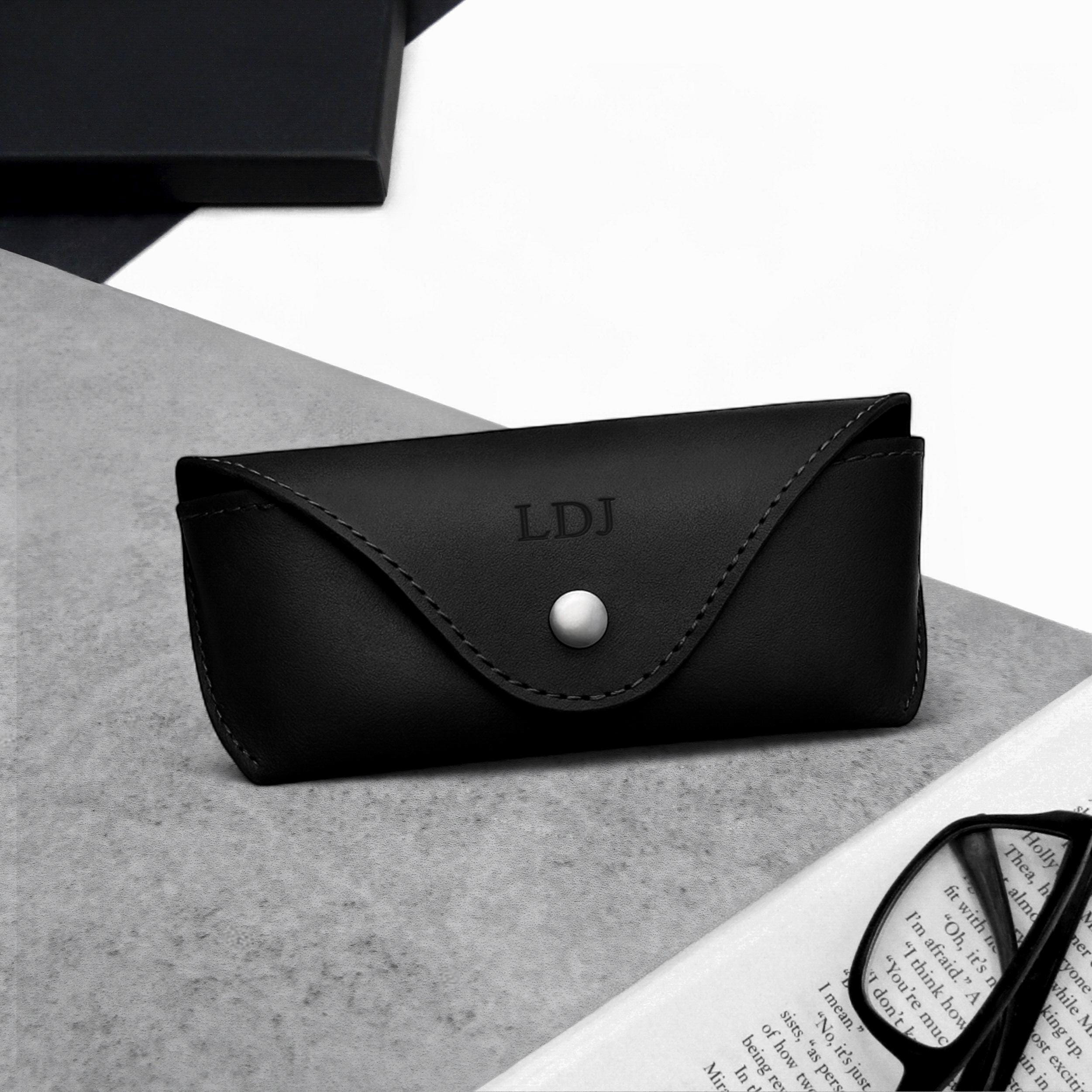 "Protect your eyewear in style with this handmade personalised arched leather glasses case, des...