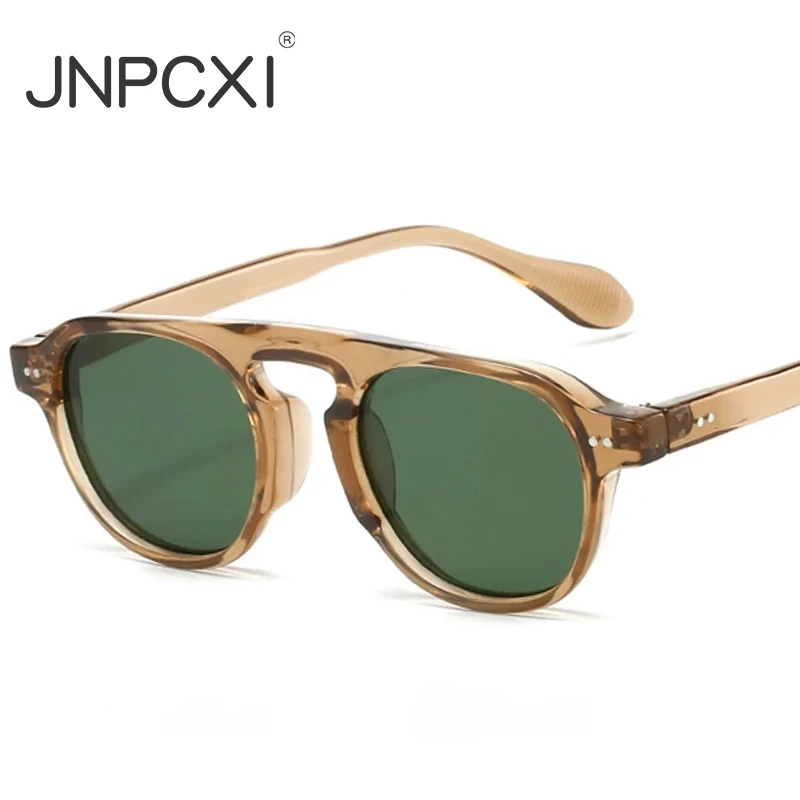 JNPCXI New Retro Rivets Round Punk Sunglasses Women Shades UV400 Fashion Men Clear Lens Frame