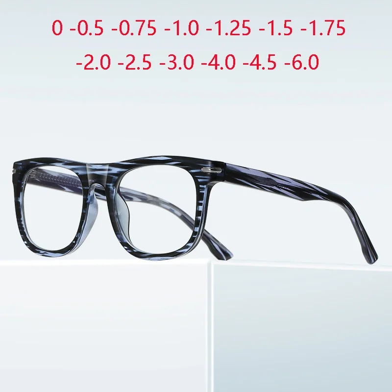 Blue Leopard Frame Square Shortsighted Prescription Glasses Men Spring Leg Anti Blue Rays Myopia Pre...
