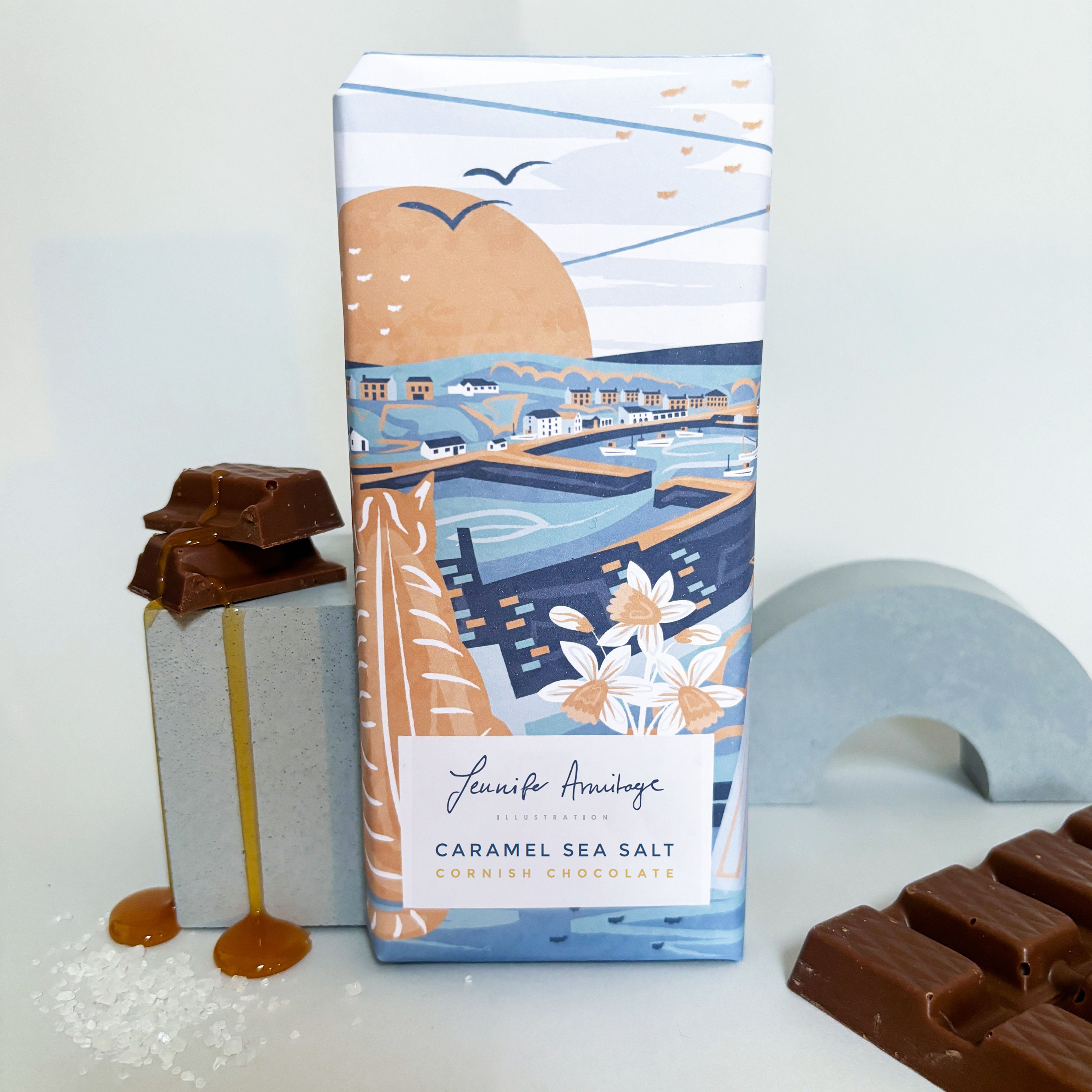 An irresistible handmade Cornish chocolate bar with an illustrated wrap of Porthleven, Cornwall. Cho...
