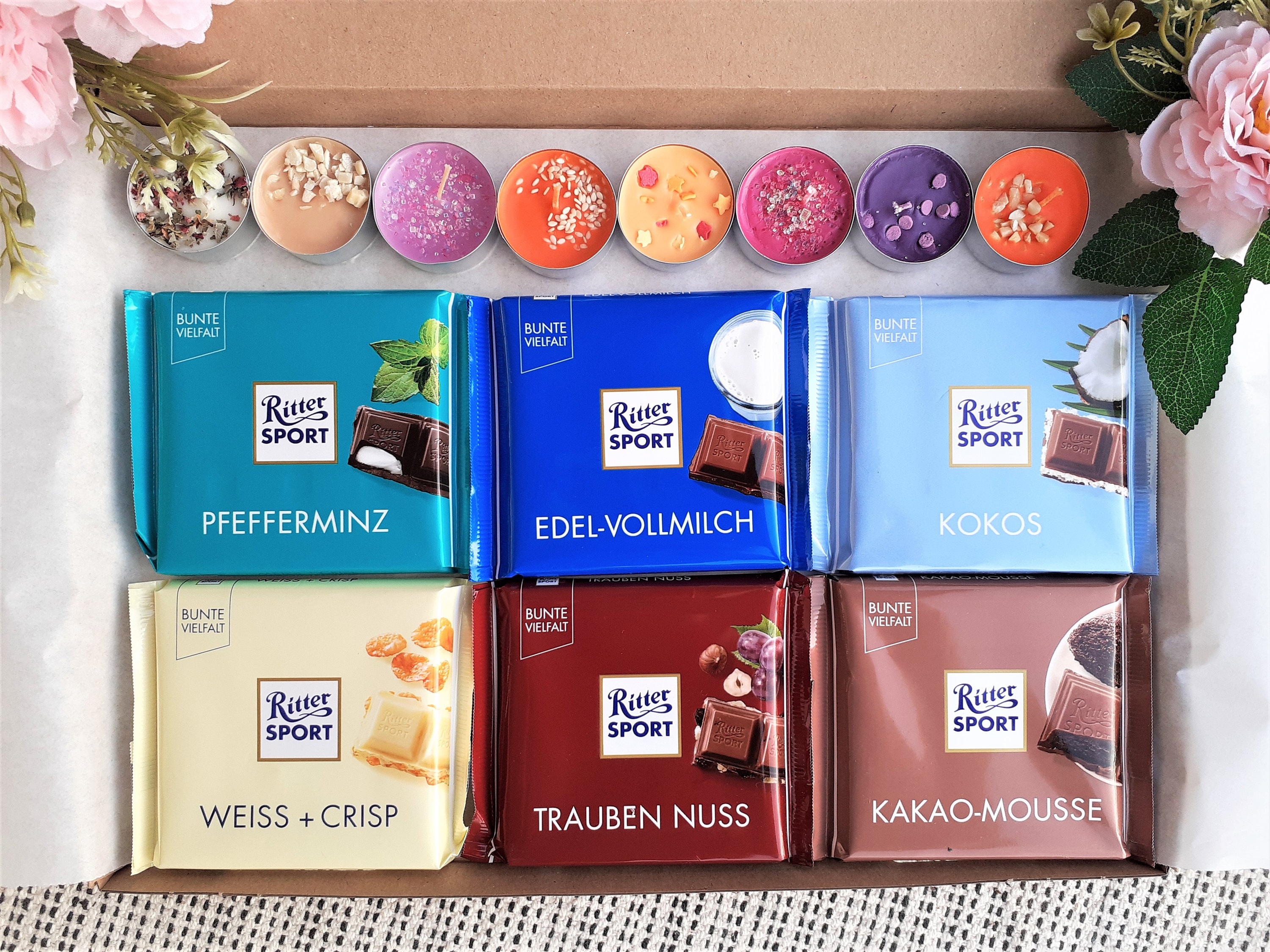 Ritter Sport Chocolate Hamper, Handmade Candles, Snack Bars Gift Bo...