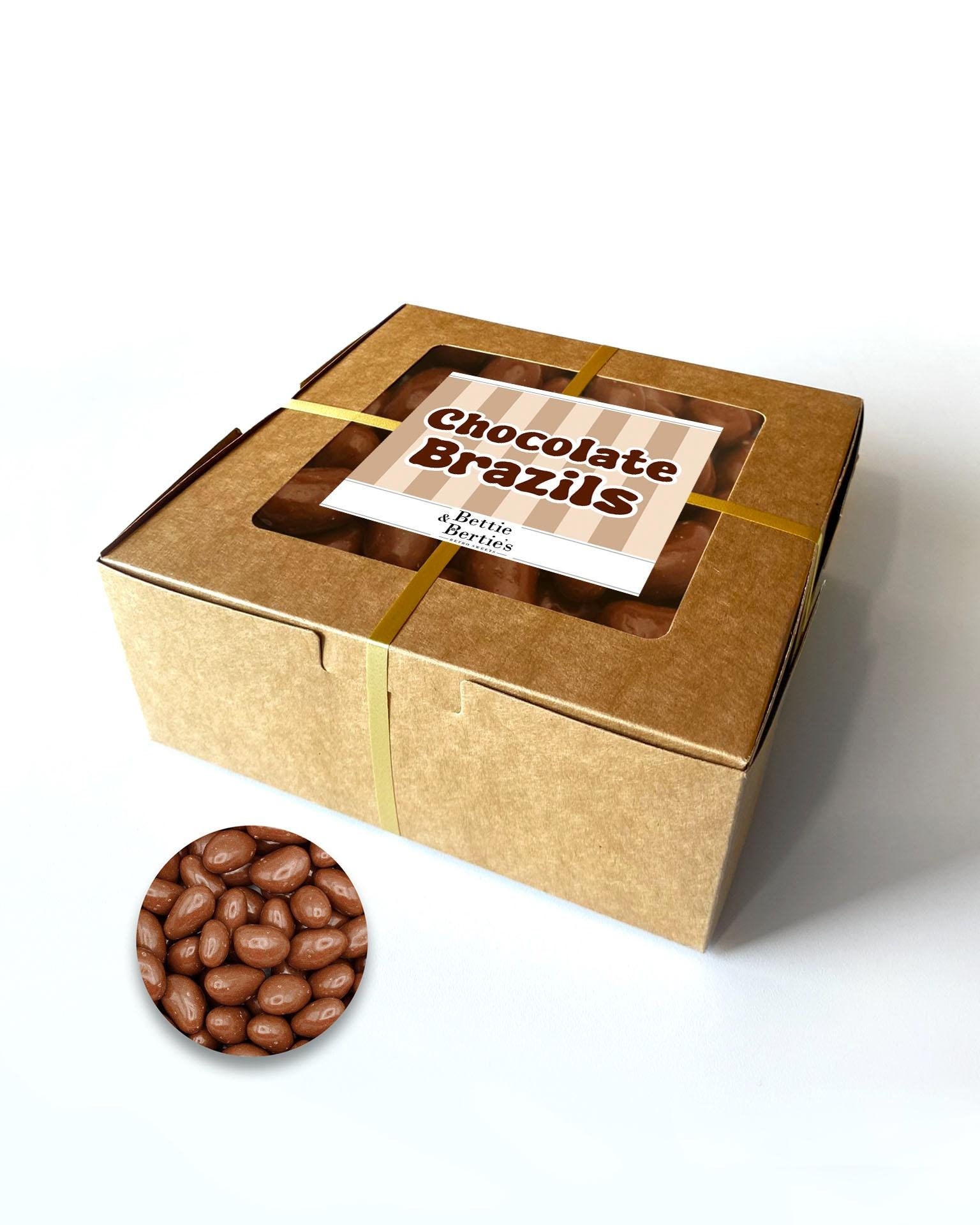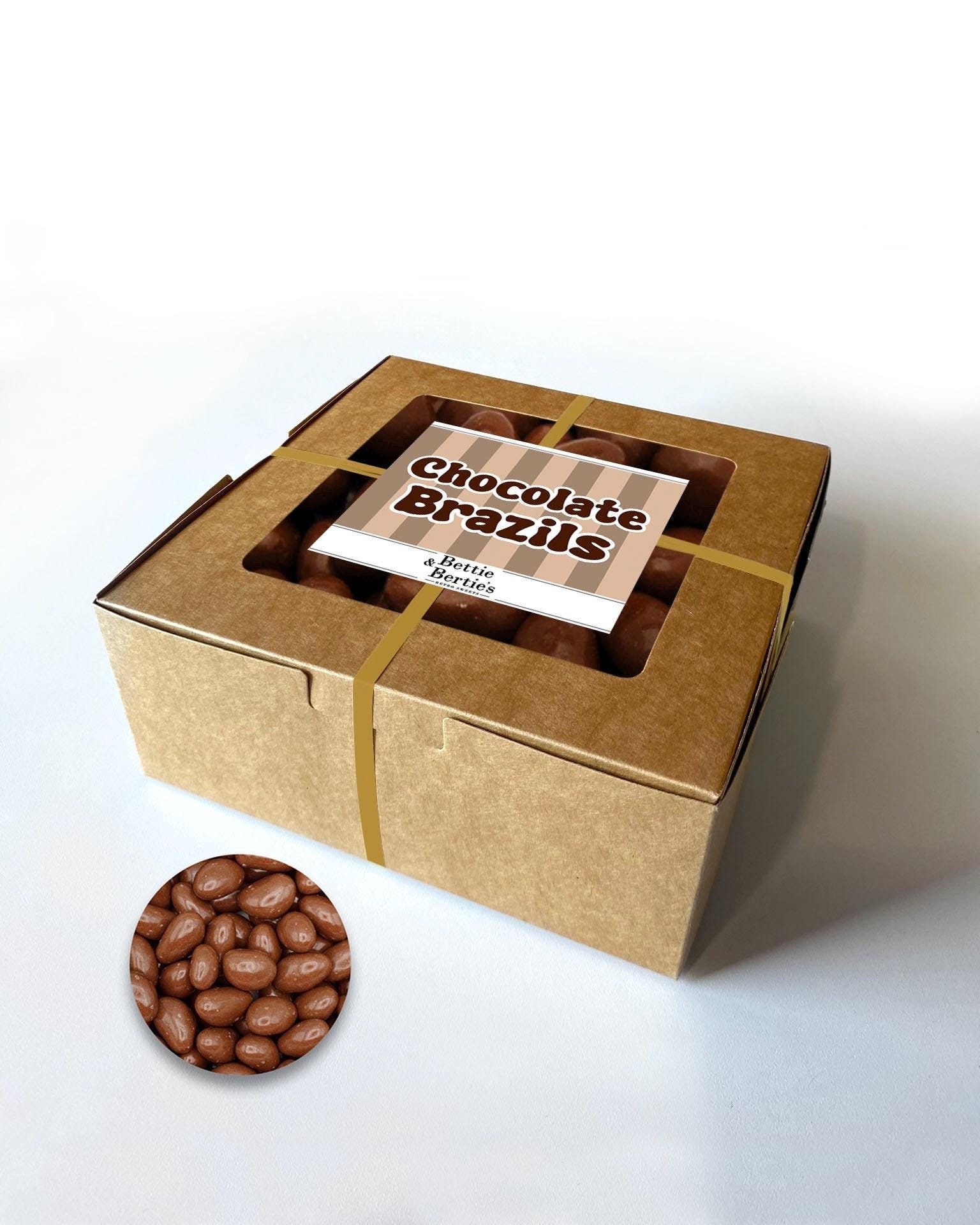 A box of Milk Chocolate covered brazil nuts, carefully assembled in our bespoke packaging. A perfect...