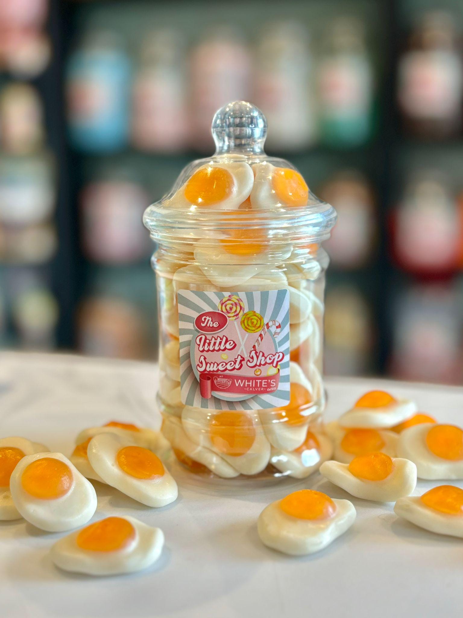 250g Fried Eggs Sweet Jar! Our sweets are picked and packed in our sweet shop in Derbyshire into a s...