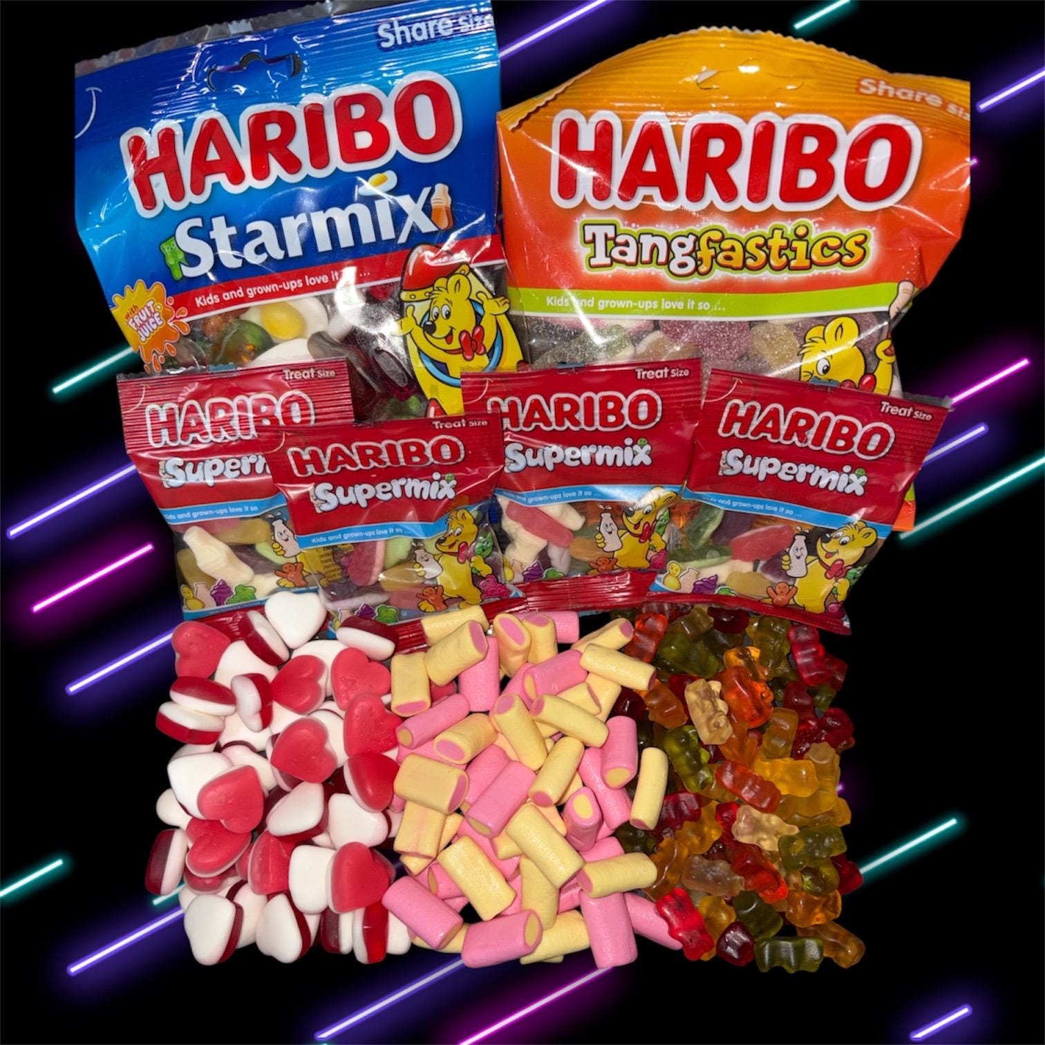 New Haribo gift boxes All gift wrapped and tag on for personalised Including is Haribo starmix treat...