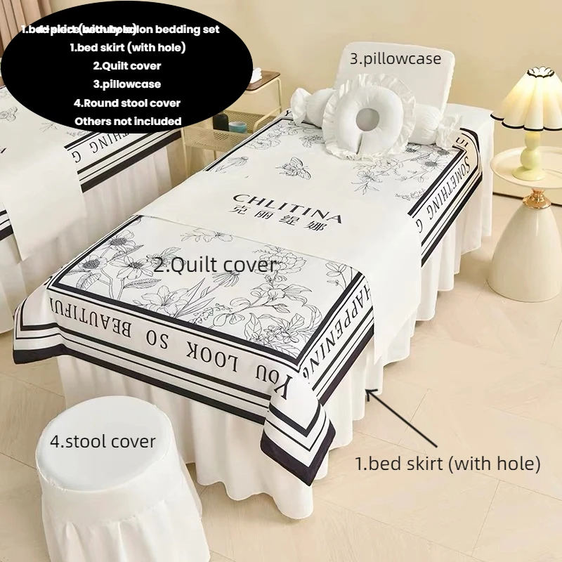 Class A 4pcs Beauty Salon Bed Cover Set, Luxury Spa Massage Beskirt+quilt Cover+pillowcase+stool Cov...