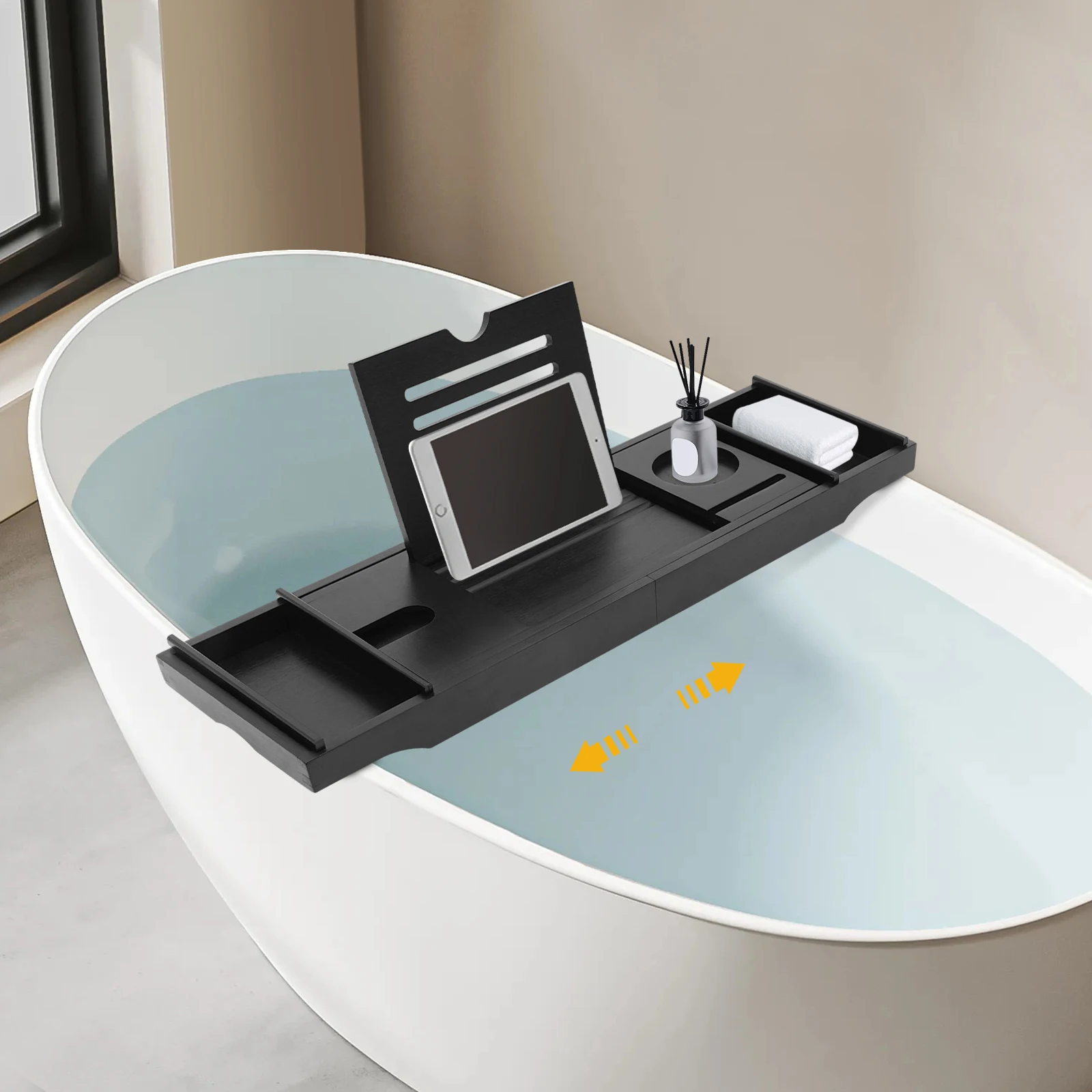 Bamboo Bath Shelf, Bathtub Storage Board, Adjustable Bathtub Board, Bath Table, Bath Tray for Bathro...