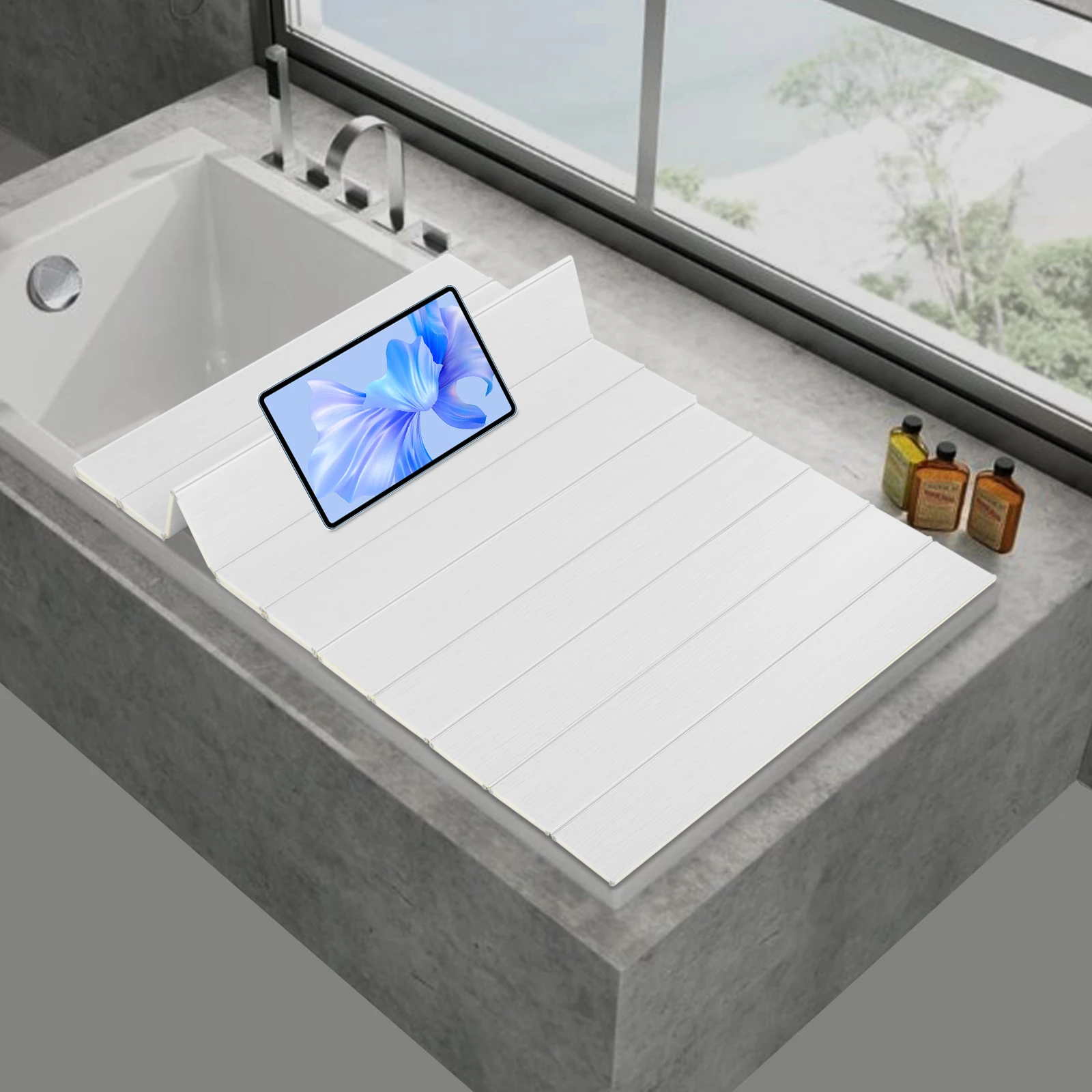 Foldable Bathtub Board, 75*170cm, PVC Bathtub Tray with White Wood Grain, Bath Cap for Almost All St...