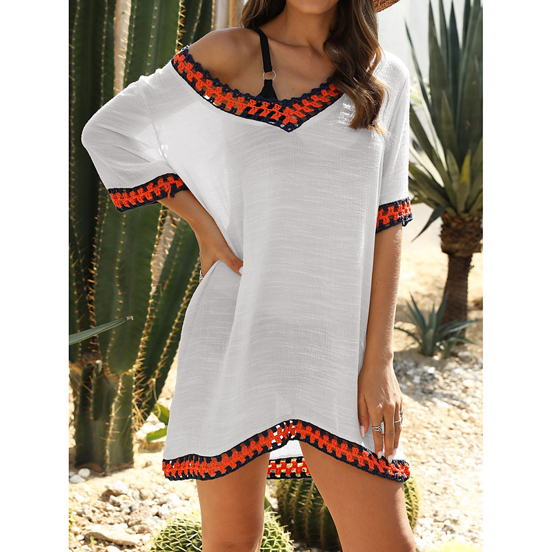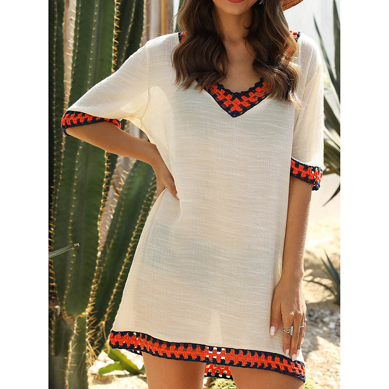 Women's Beach Dresses Oversized Beach Wear Holiday Short Sleeves Bl...