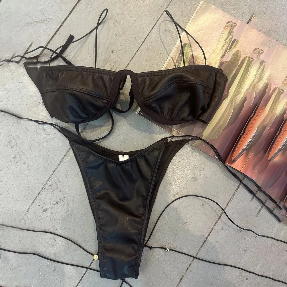 Shiny Black Push Up Bikini 2026 Sexy Women Swimsuit Micro Bikini Bandeau Biquini Female Swimwear Bat...