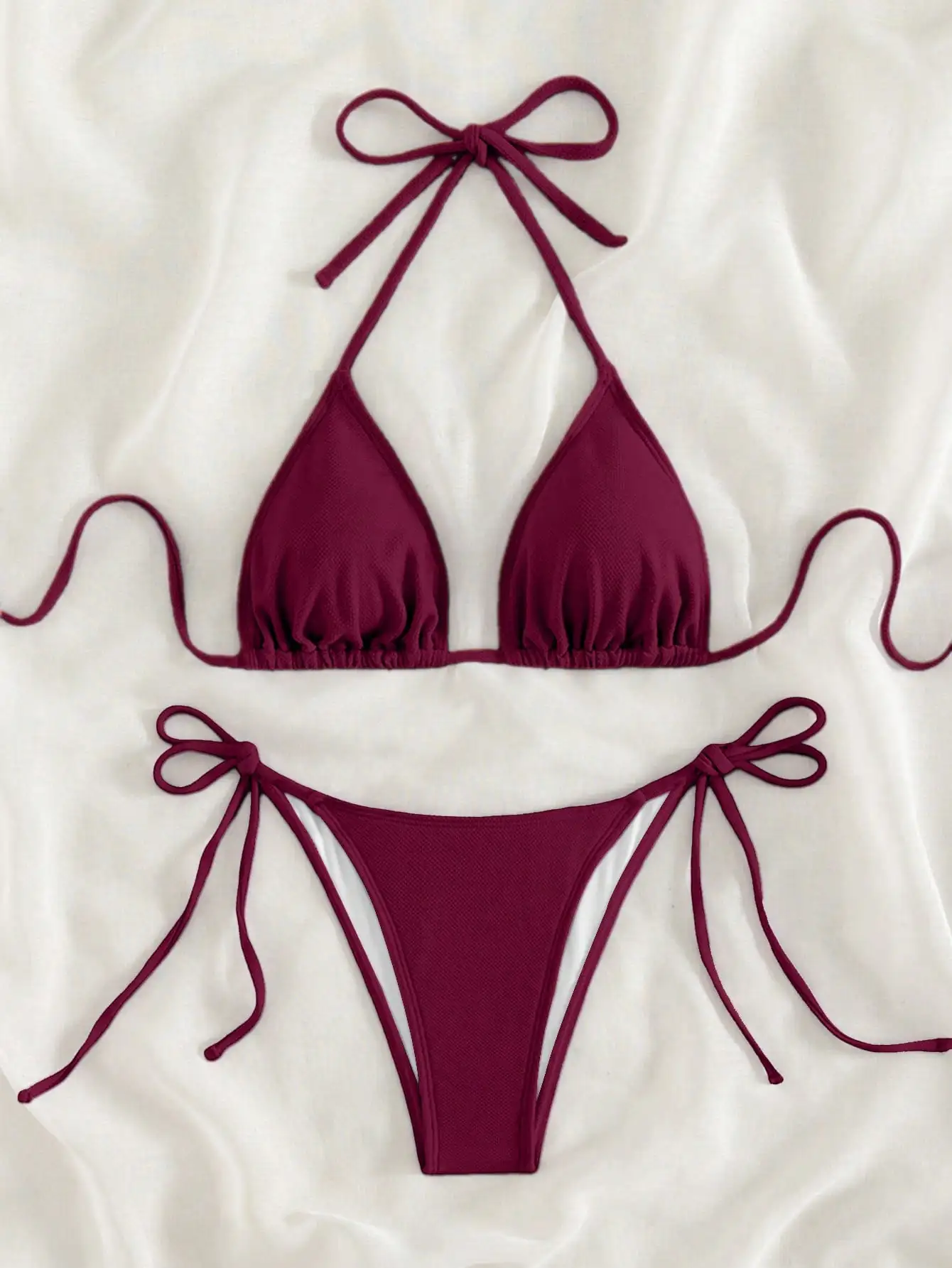 Sexy Women Thong Solid Color Bikini Set Side Halter Tie Swimsuit Ladies Split Strap Adjustable Brazi...