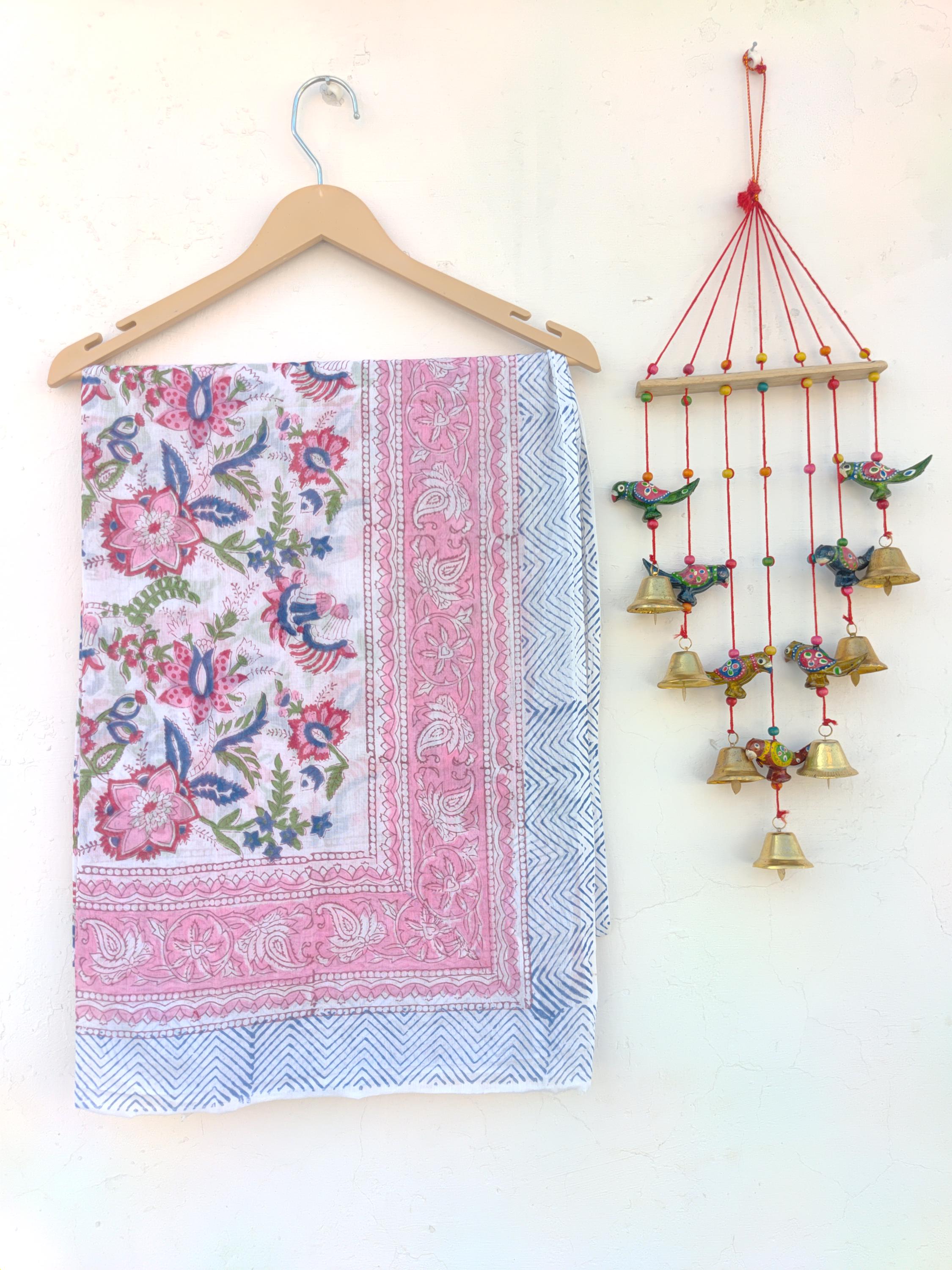 THE CLASSIC TEXTILE Pink Color Hand Made Cotton Sarong ,Indian Hand Block Print Scarves ,Decorative ...