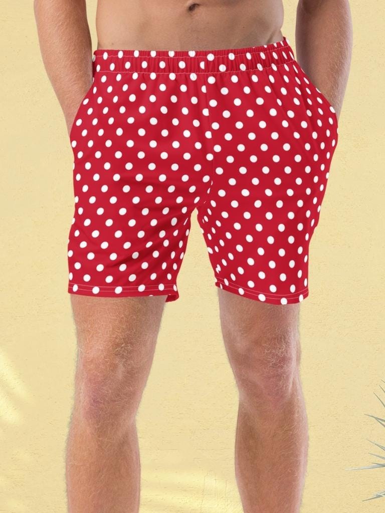 Polka dot men shorts dotted, Red white swim trunks, Men swimwear wi...