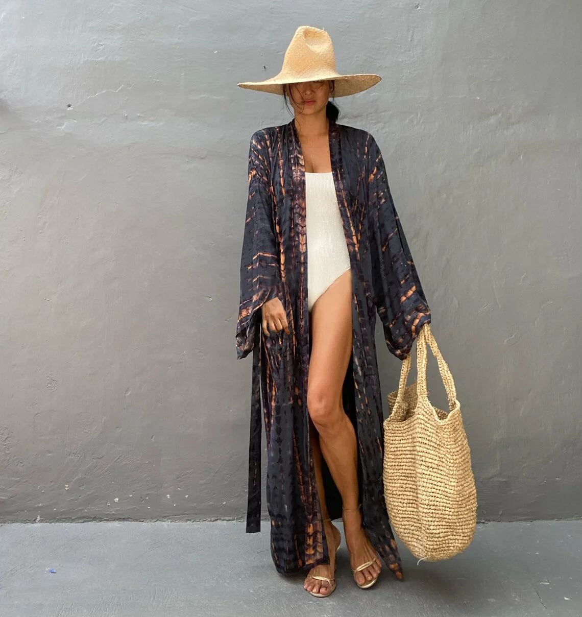 2023 Women's Boho Stripe Tie Dye Swimsuit Cover Up with Belt Tunic ...