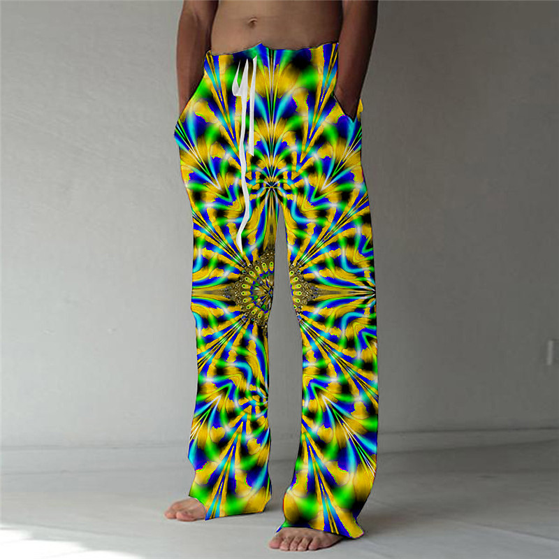 Men's Summer Pants Beach Pants Pocket Drawstring Elastic Waist Grap...