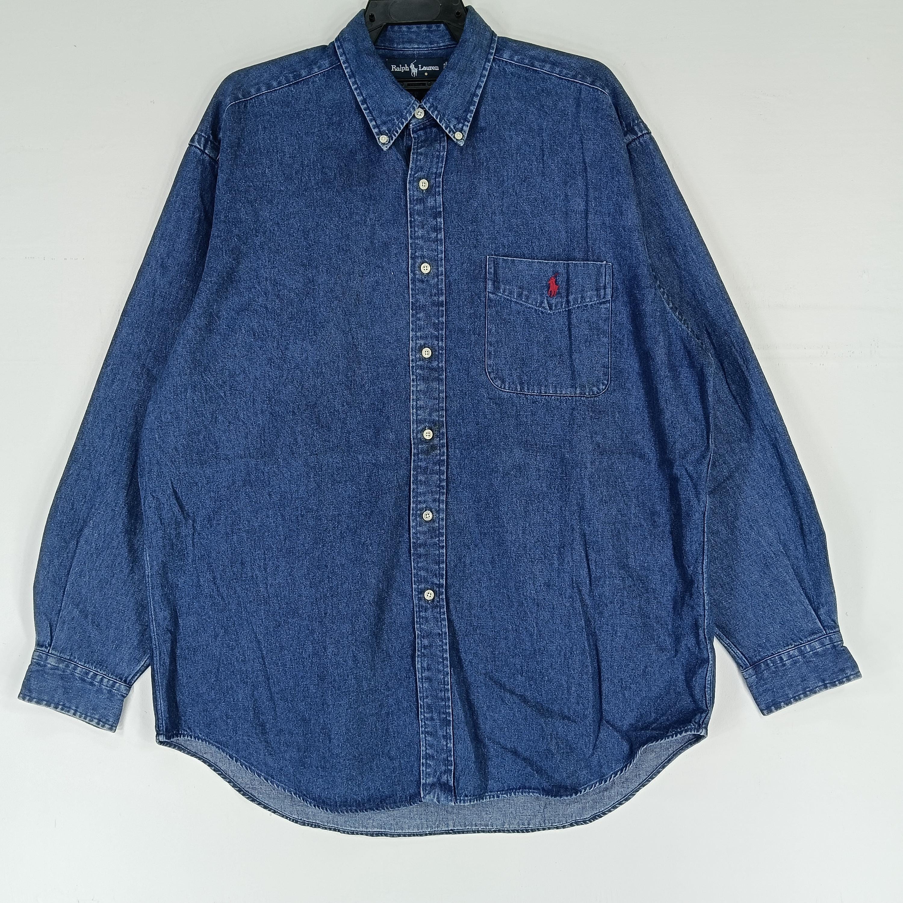 Vintage Polo Ralph Lauren Jeans Shirt Large 90s Polo Pony Blue Deni...