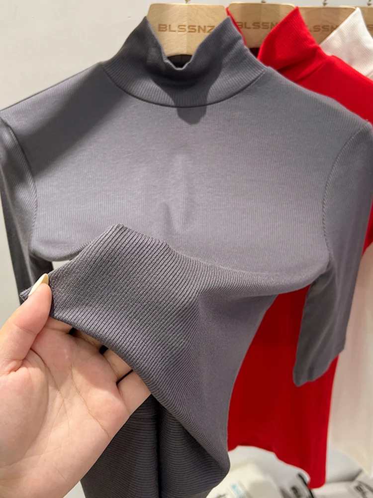 2026 Basic T Shirt Women Turtleneck Slim Tshirt Short Sleeve T-shir...