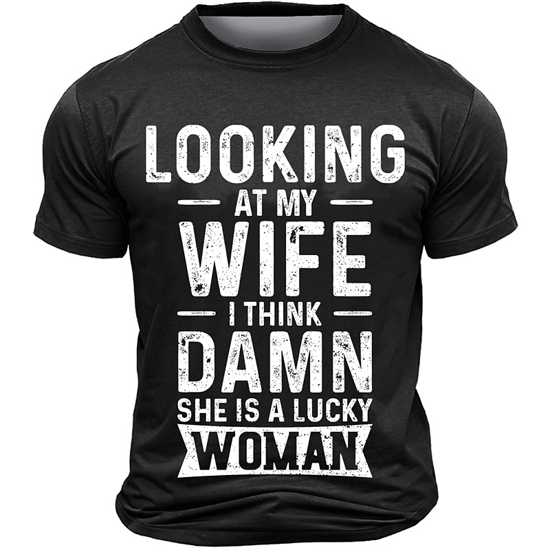 Men's Funny T-Shirt: 'Looking At My Wife I Think Damn She Is A Luck...