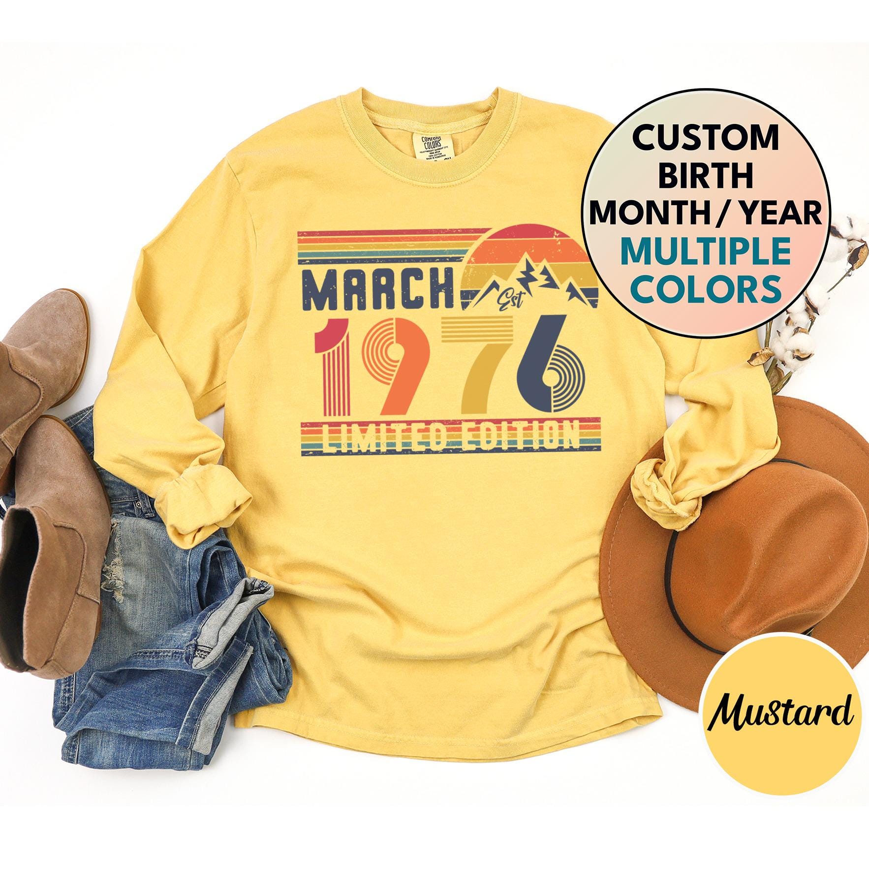 1976 Comfort Colors Long Sleeve Shirt, 1976 Birthday Sweatshirt, 19...