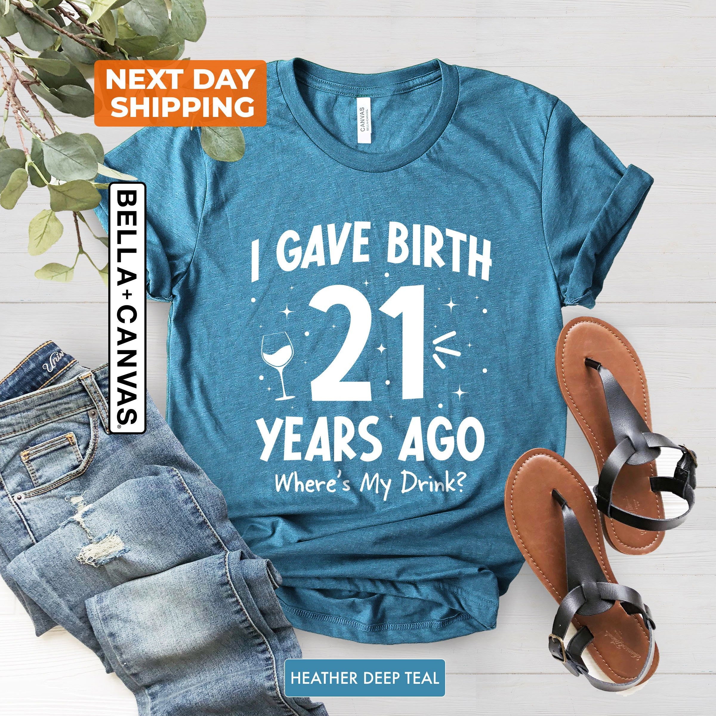 I Gave Birth 21 Years Ago Where Is My Drink Shirt, 21st Birthday Te...