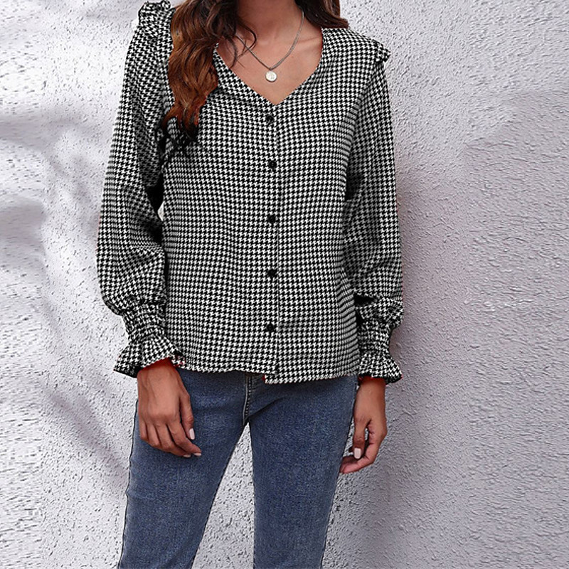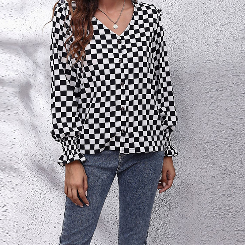 Women's Summer Tops Chiffon Tops Plaid Daily Stylish Basic Long Sle...