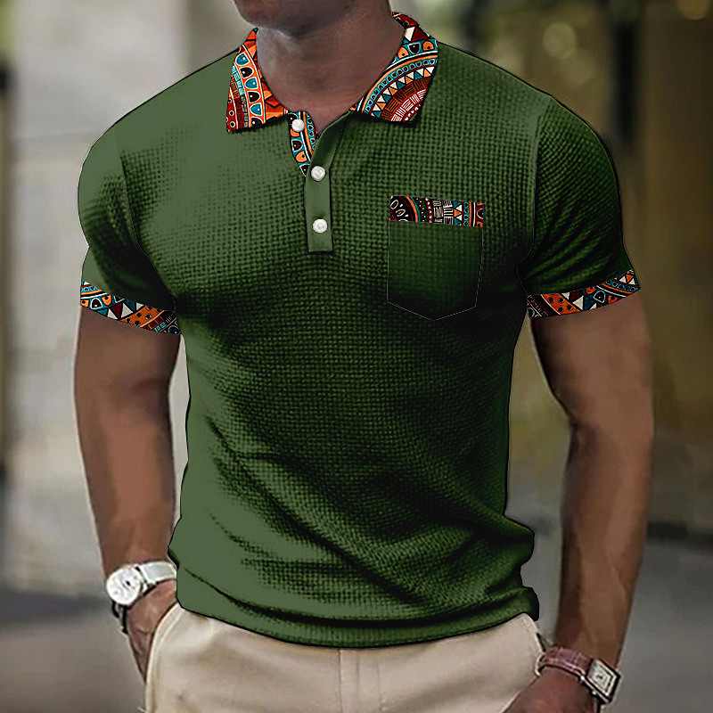 Men's Graphic Prints Vintage Geometry Waffle Polo Shirts Polo Shirt...
