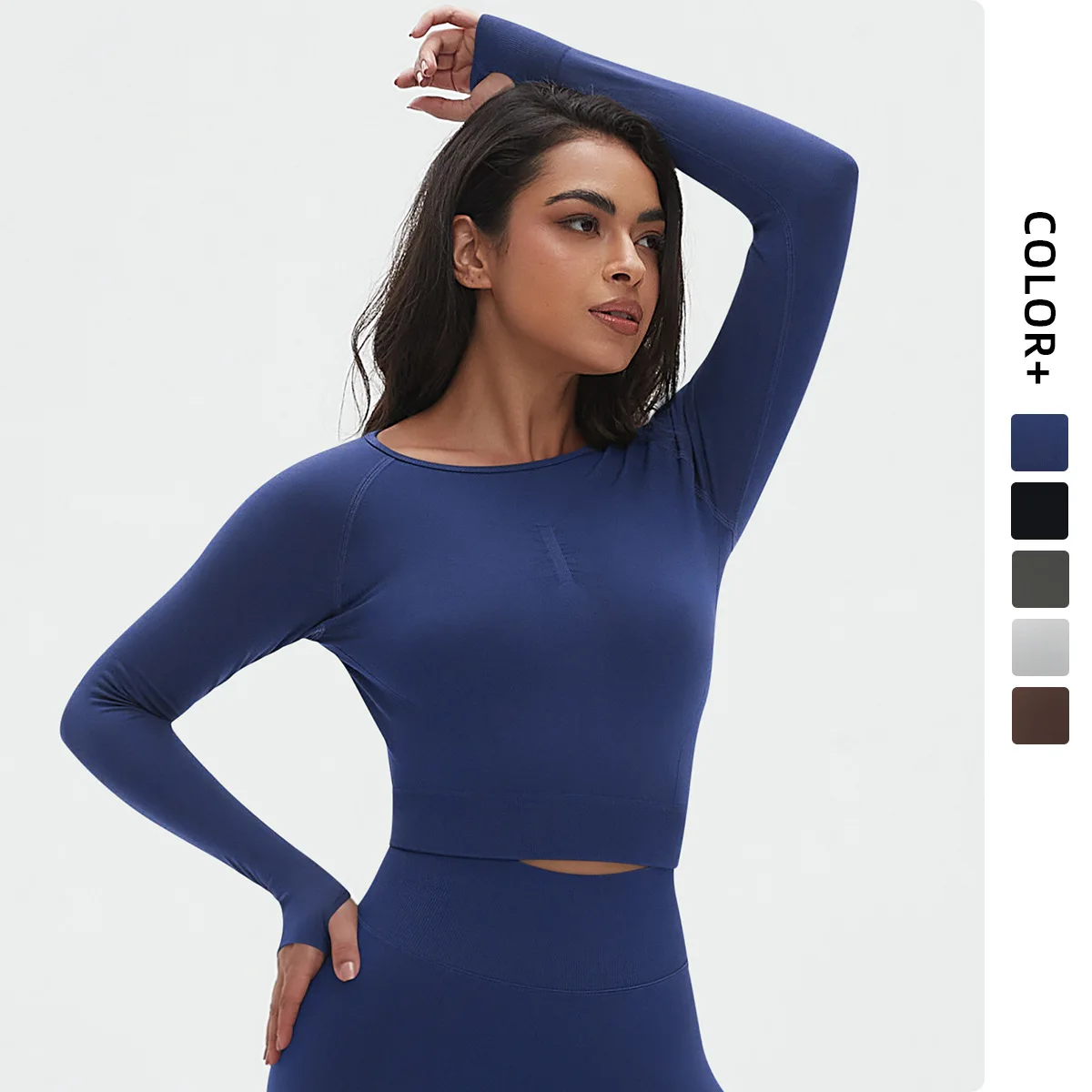 Active Stretch Ribbed Sport Shirts For Women Long Sleeve Slimming Y...