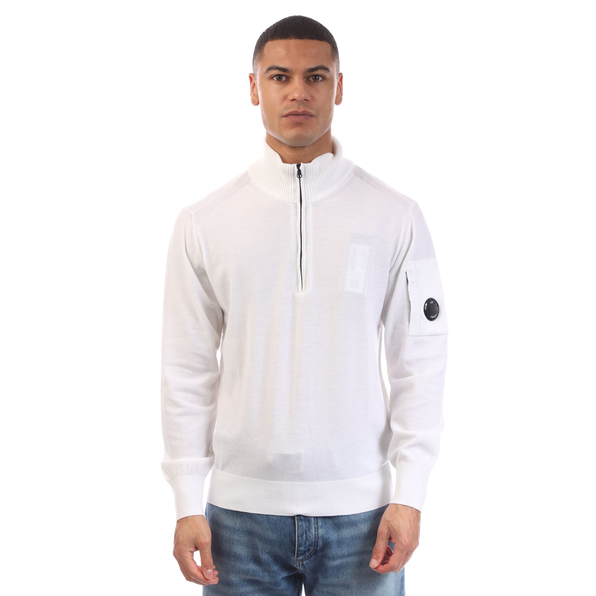 Mens C.P. Company Extrafine Merino Wool Half-Zip Sweater in white.- Ribbed neck.- Half zip fastening...