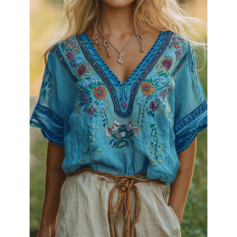Women's Shirt Floral Graphic Bohemia Stylish Classic Short Sleeve C...
