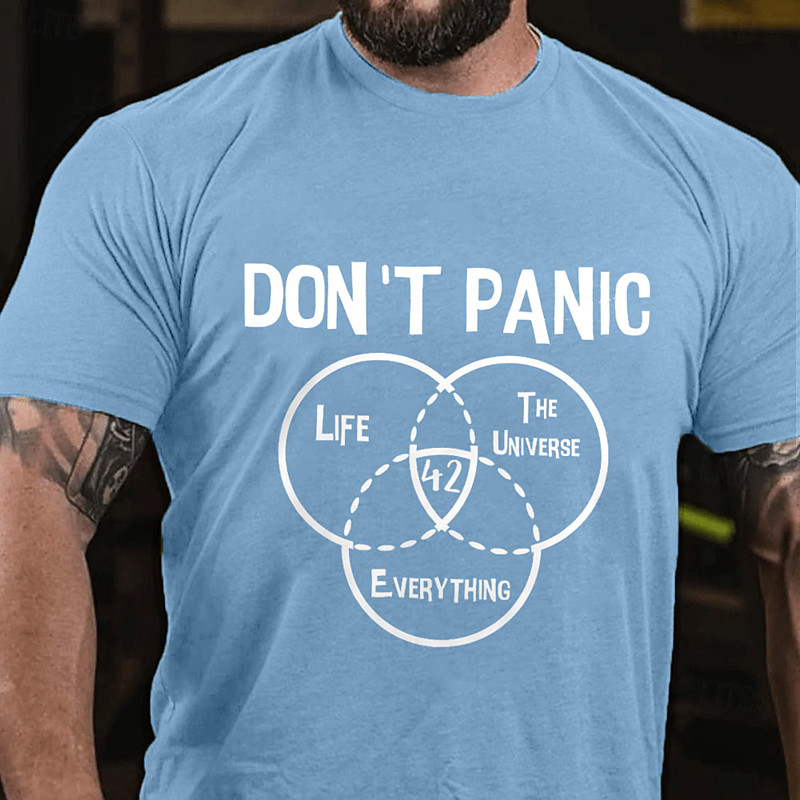 Men's Graphic T-Shirt featuring Don't Panic 42 Life The Universe Ev...