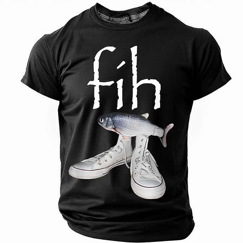 Mens Funny Pun Graphic T-Shirt - fíh Fish Shoes Wordplay Hum...