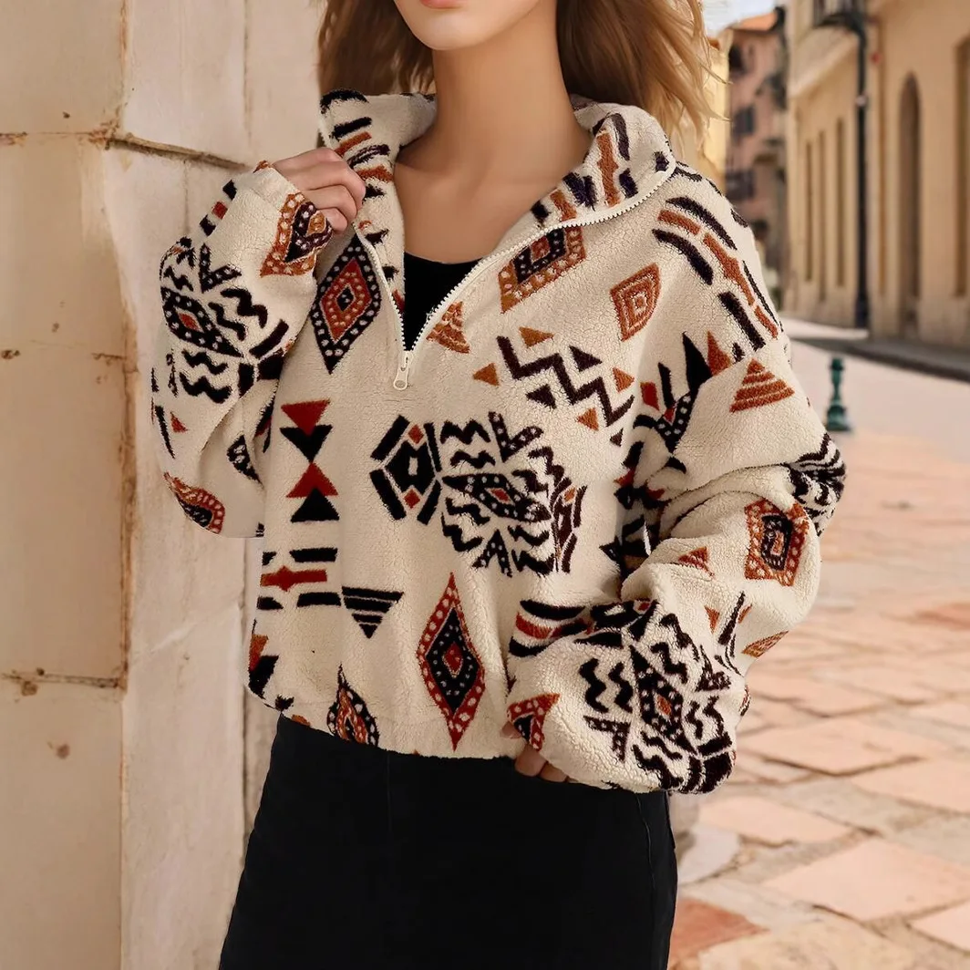 Custom Vintage Women's Winter Pullover Soft Aztec Sherpa Fleece wit...
