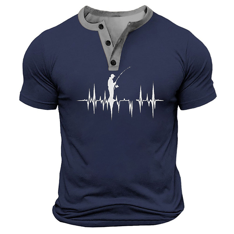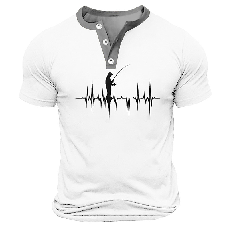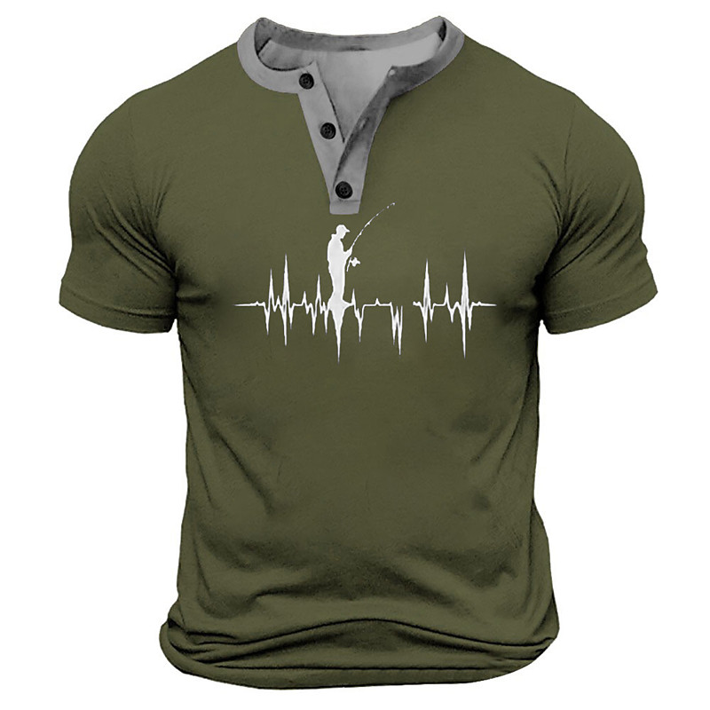Men's Funny Fishing T Shirt Henley Shirt Short Sleeve Designer Retr...