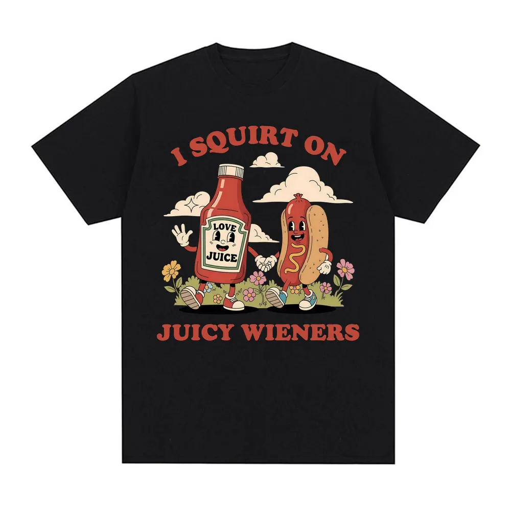 I Squirt on Juicy Wieners Graphic T Shirt Funny Meme T Shirts Men Women Adult Humor Casual 100Cotton...