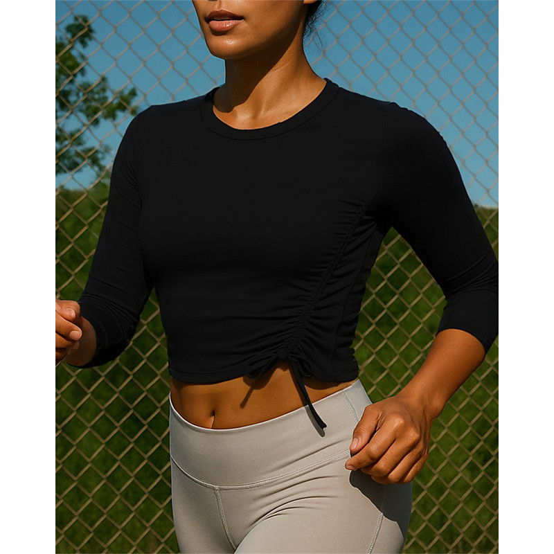 Women's Running T-Shirt Running Top Sports Top Drawstring Long Slee...