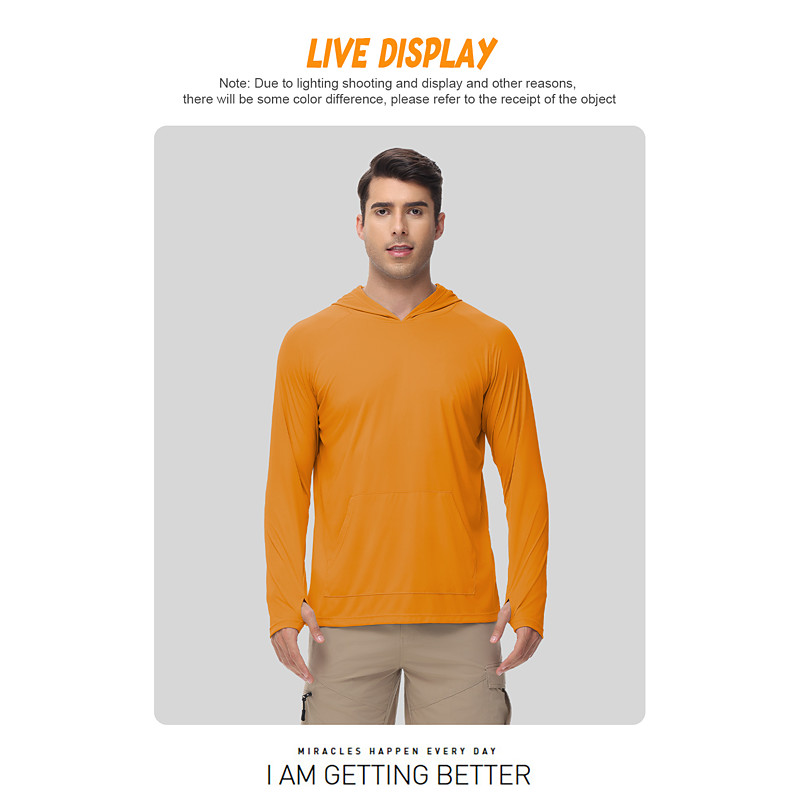 Men's Hiking Tee shirt Long Sleeve Hooded Tee Tshirt Outdoor Stretc...