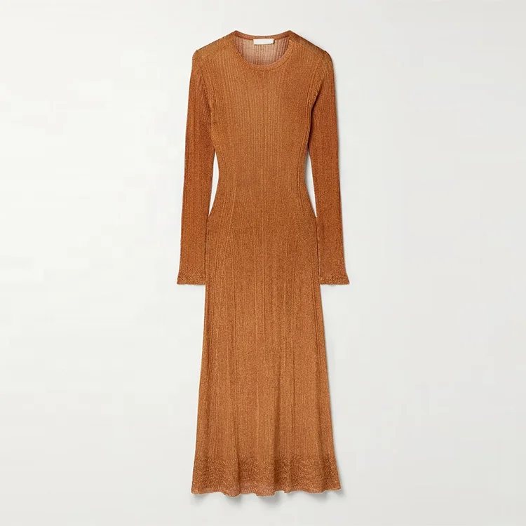 Knitwear Manufacturer Custom Spring Summer Brown Crew Neck Long Sle...