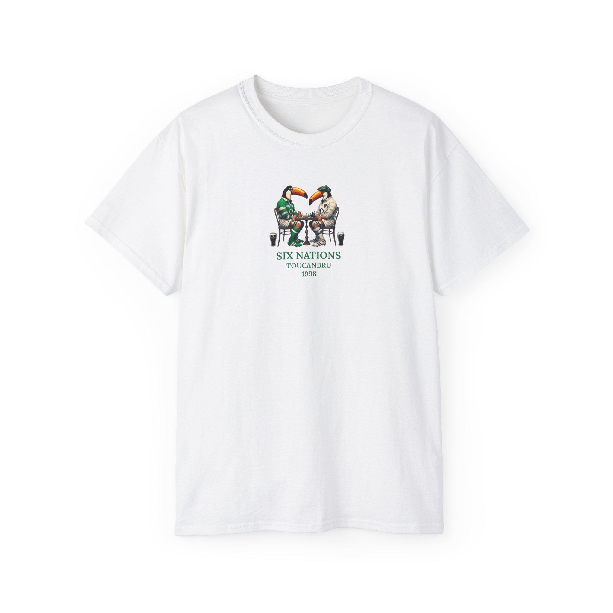 This SIX NATIONS GUINNESS TOUCANBRU Tee is perfect for fans of rugby and beer, giving off a fun and ...