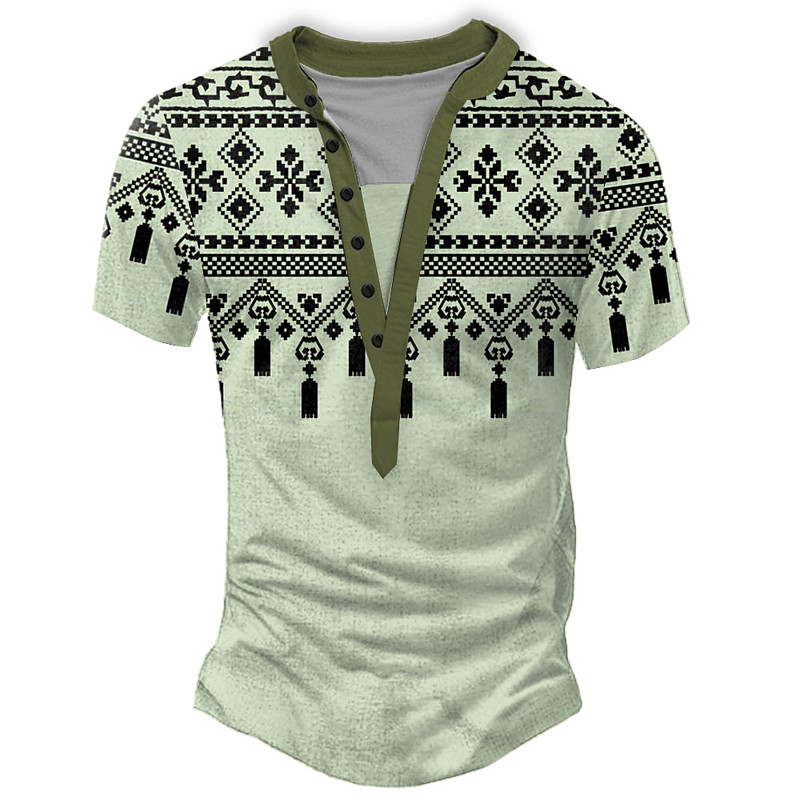 Men's Geometric Tribal T Shirt Henley Shirt Tee Short Sleeve Design...