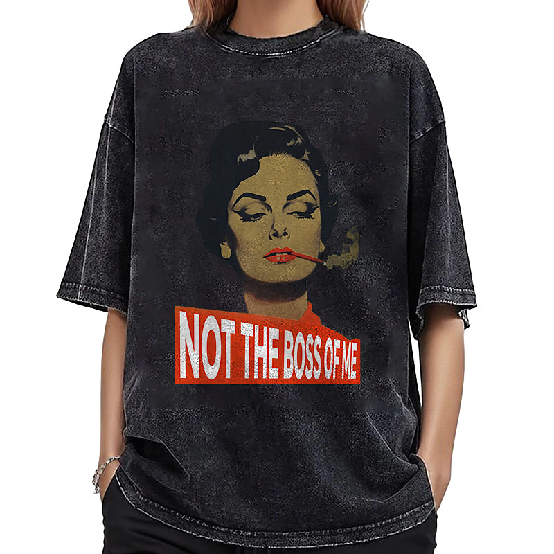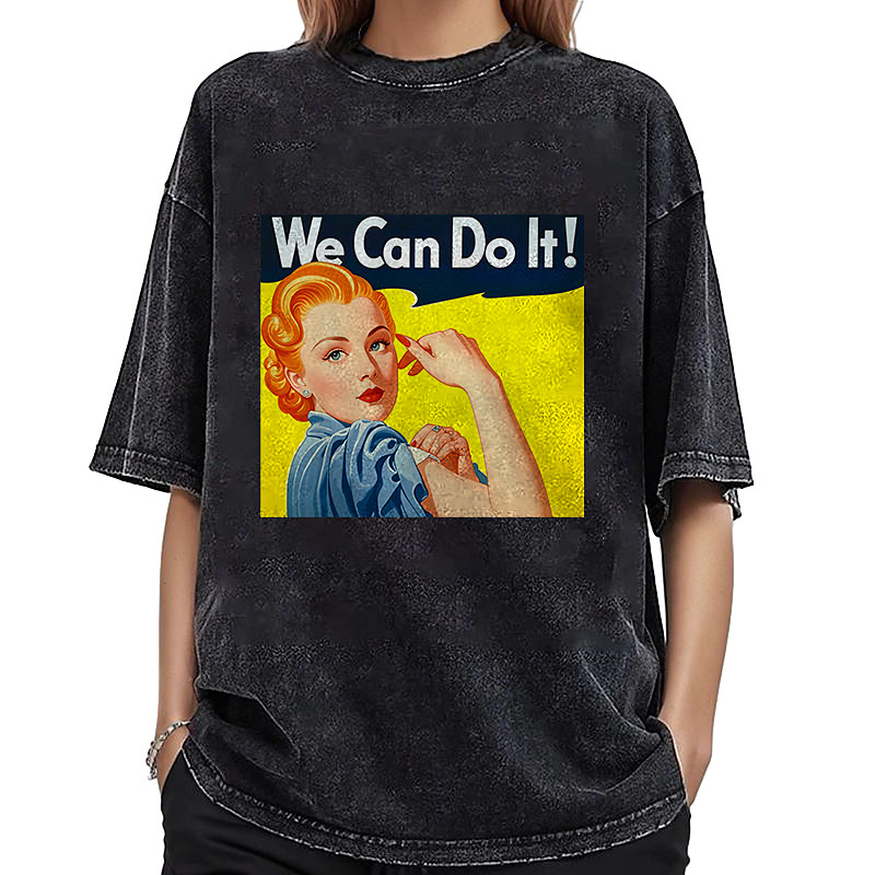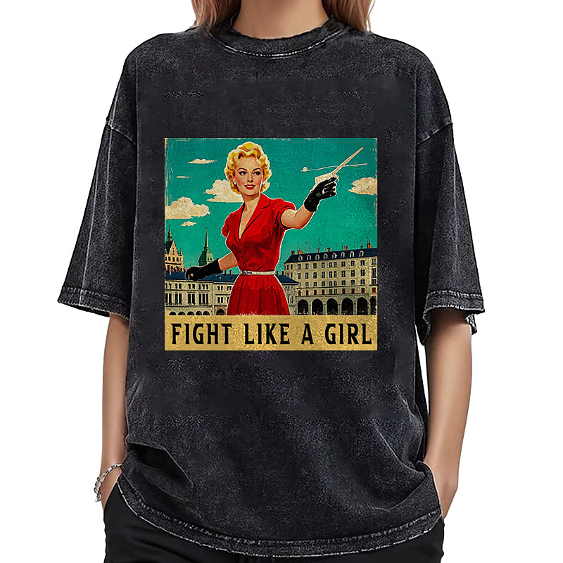 Retro Poster Retro Girl T-shirt Sleeve T-shirt Oversized Acid Washe...