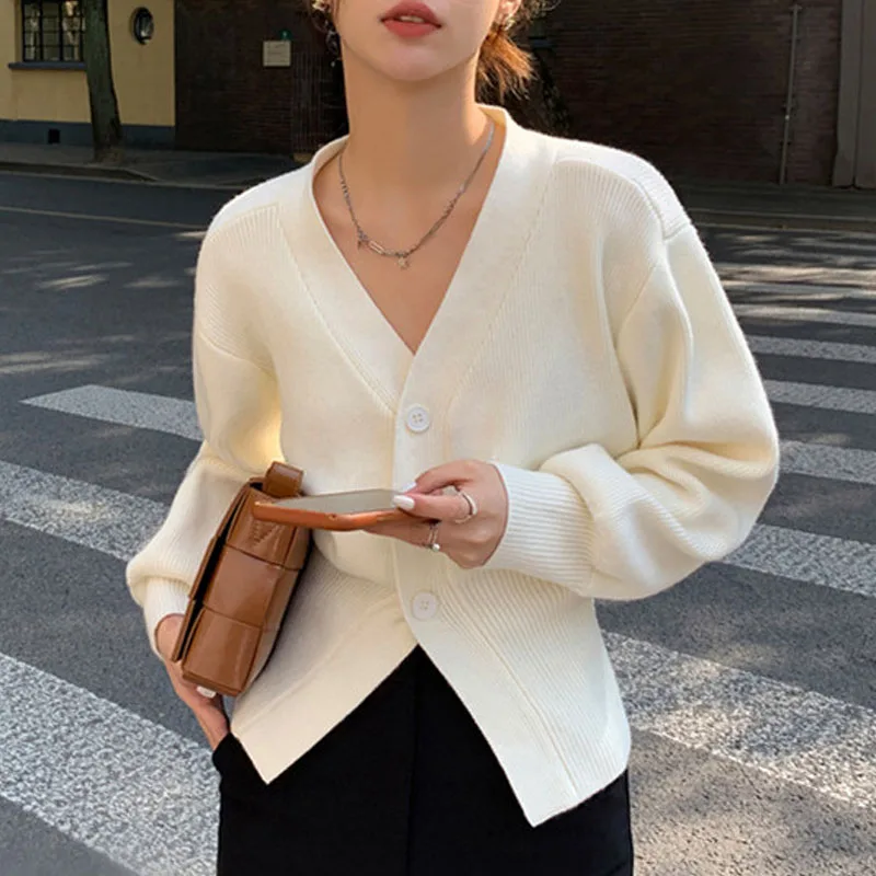 Spring Autumn Solid Cardigan Thin V-Neck Long Sleeve Knit Cardigan ...