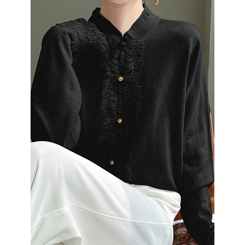 Women's Blouse Solid Color Stylish Casual Long Sleeve Mandarin Coll...
