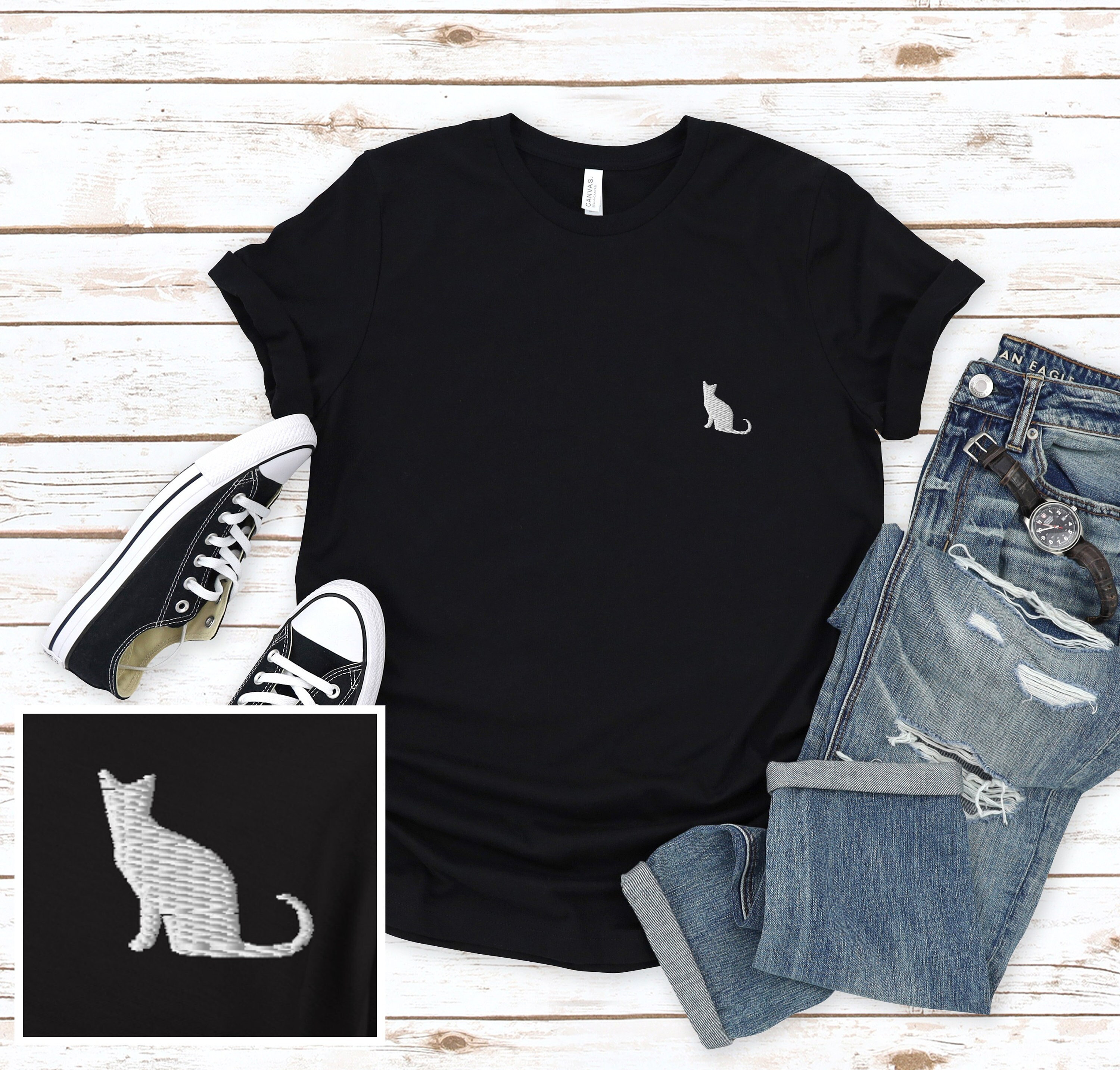 Cat T-Shirt, Embroidered Cat Shirt, Gift for Cat Lover, Cat Dad Cat...