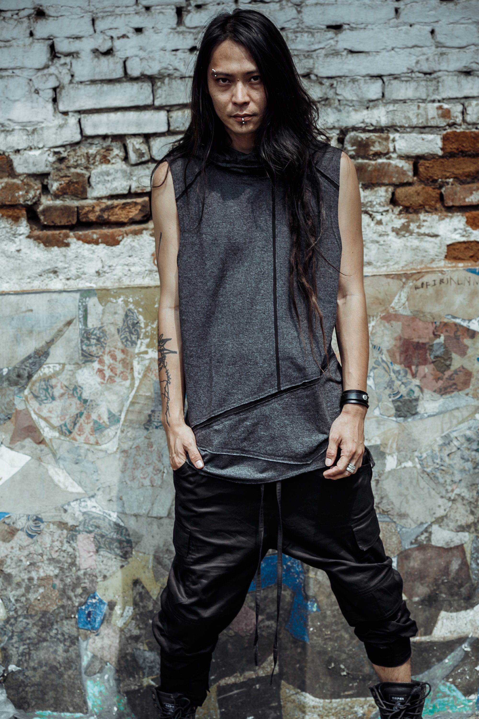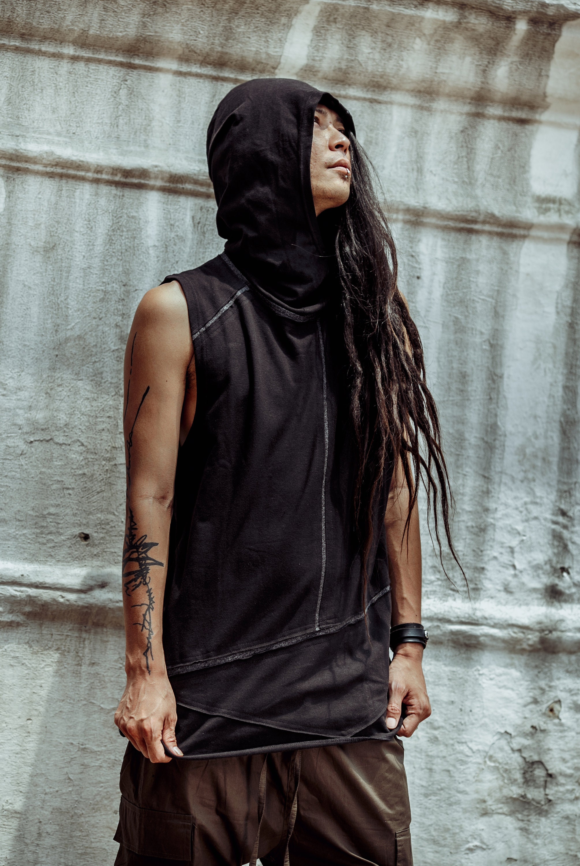 ~ Cotton Tank Top with hood for men ~ Made of Cotton Pique, hooded tank top with rough cuts and asym...