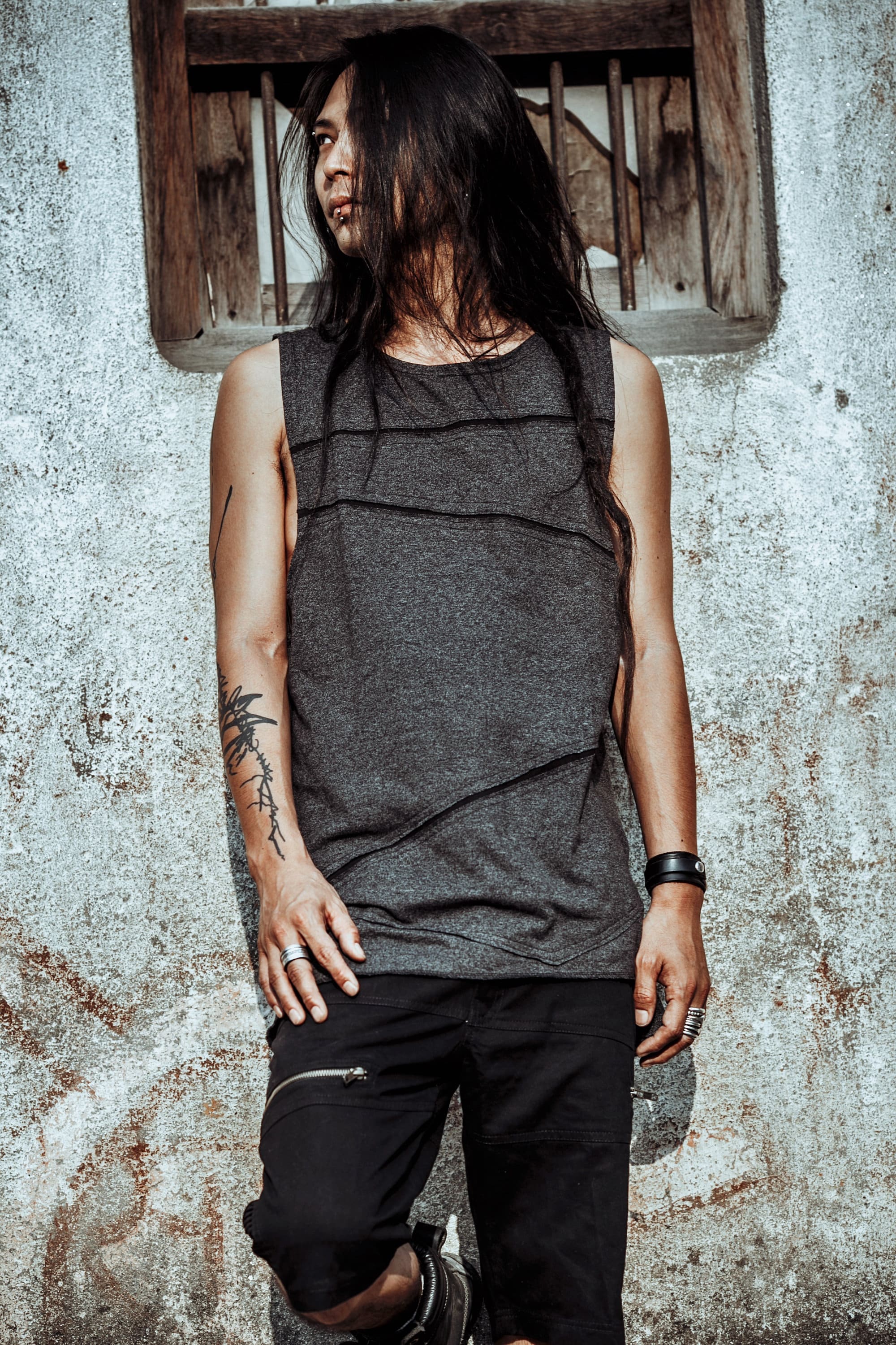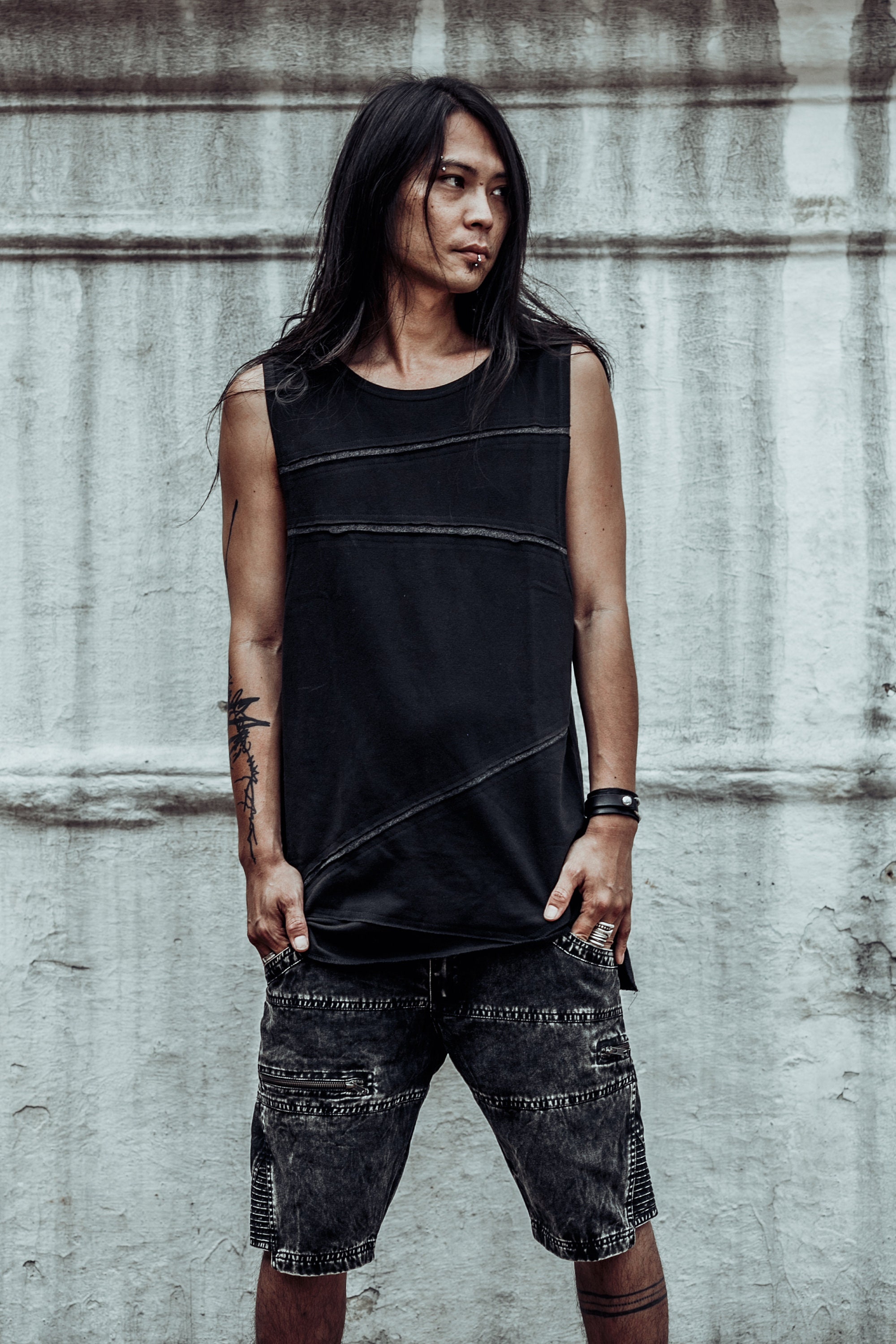 ~ Cotton Tank Top for men ~ Made of Cotton Pique tank top with rough cuts and asymmetric pattern. ~ ...