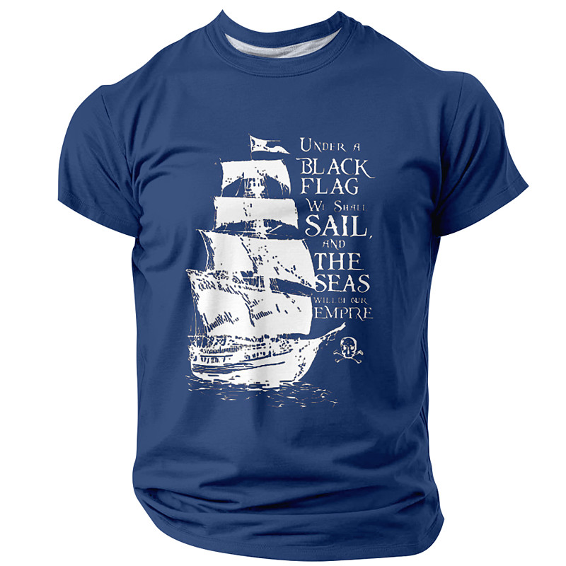 Men's Pirate Ship Sailing Graphic T-Shirt - Under A Black Flag We S...