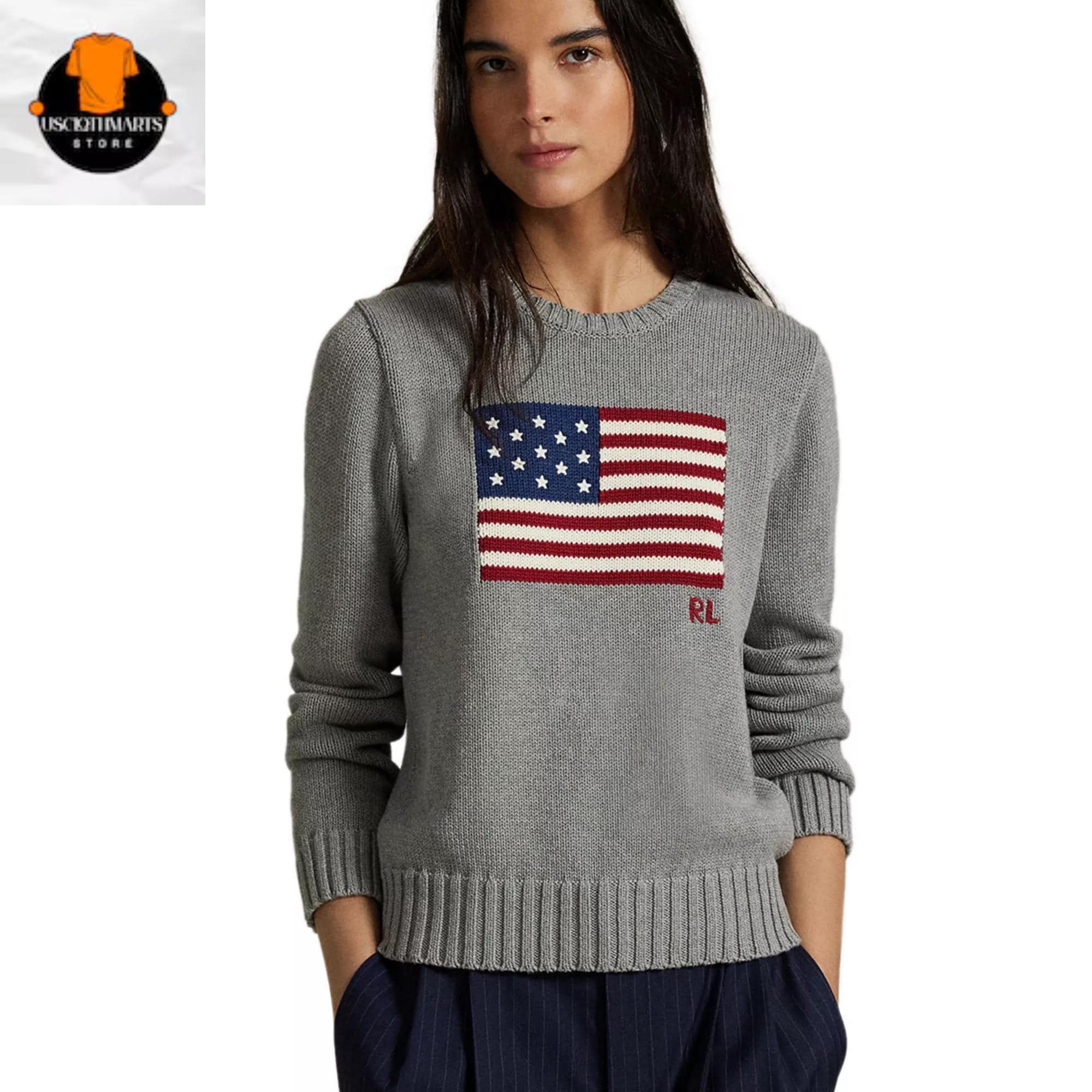Polo Ralph Lauren American Flag Cotton Crewneck Sweater - Classic U...