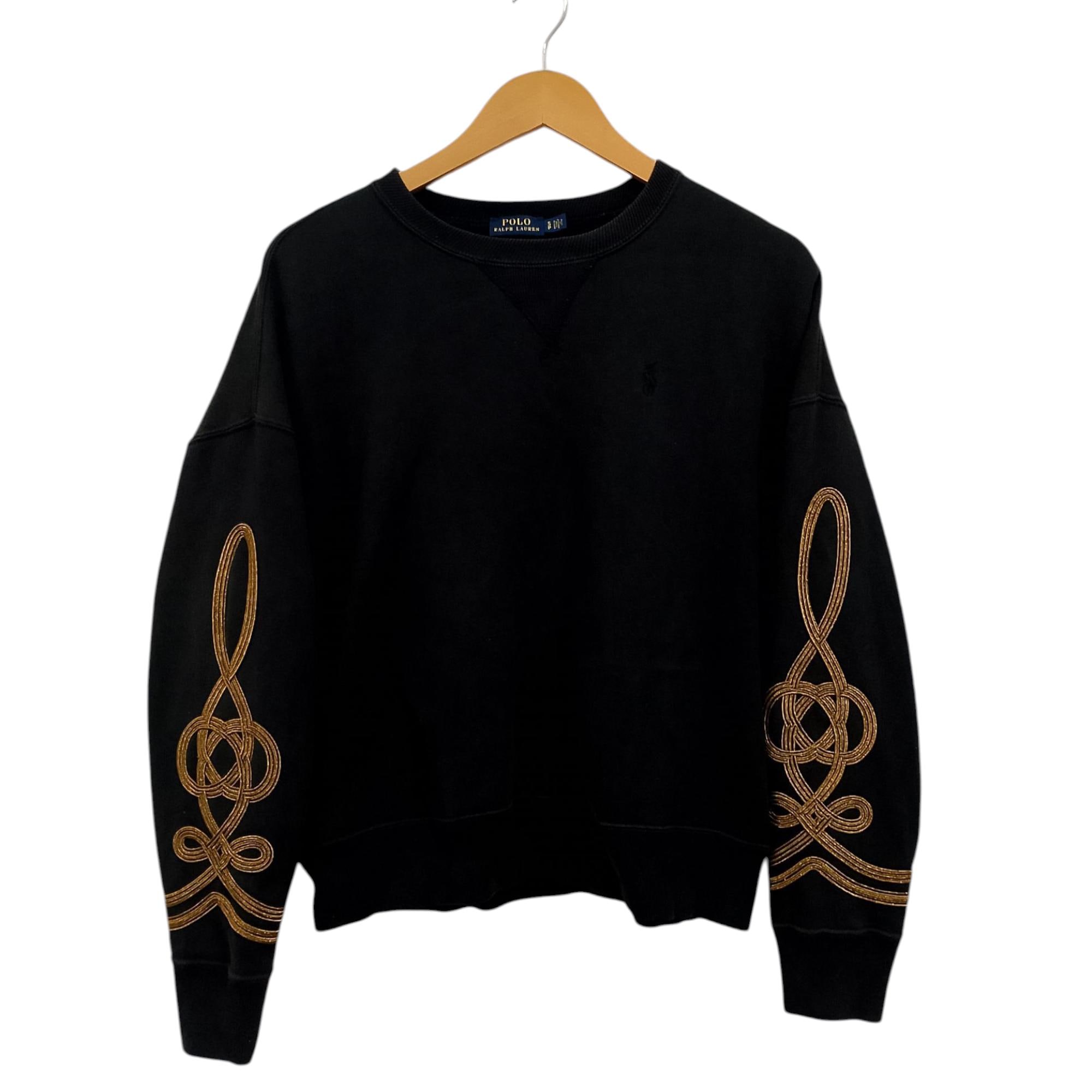 Polo Ralph Lauren Black Crewneck Sweatshirt Gold Sleeve Embroidery ...